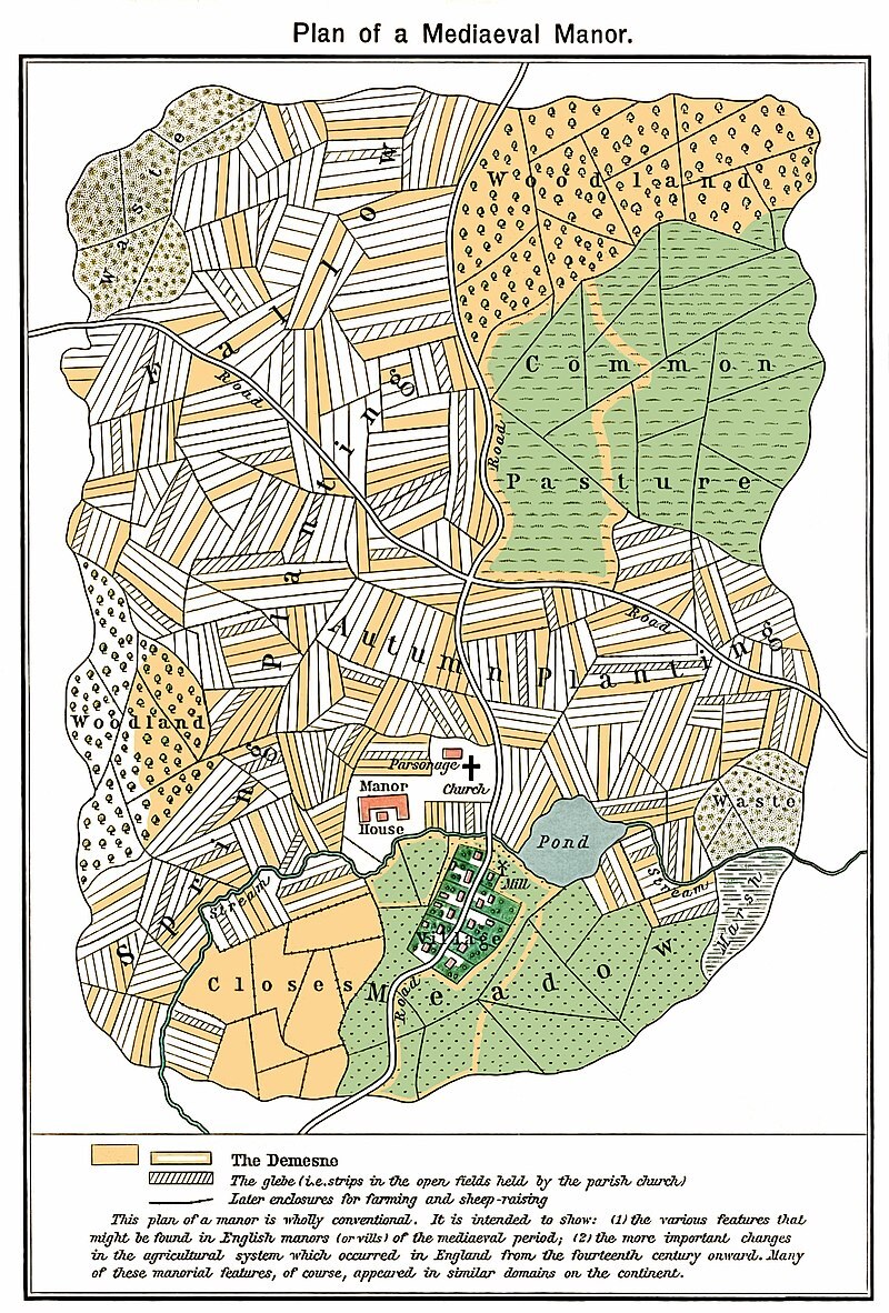 Трехполье распространилось в Западной Европе в Средневековье, к XVI веку оно добралось до Литвы и России. До этого было распространено двуполье с чередованием злаки/пар раз в несколько лет. В малонаселенных лесистых областях велось подсечно-огневое земледелие - при нем на участке вырубаются деревья, крупные бревна используются для строительства, а все остальное сжигается на месте, удобряя почву углеродом. В первые годы на таком участке урожаи были высокими, но затем снижались. После этого участок оставляли лет на 20, чтобы на нем вырос новый лес, и шли чистить какой-нибудь из старых участков. Трехполье выгодно отличалось от двуполья меньшей долей неиспользуемой земли (1/3 вместо 1/2) и более высокими урожаями. Но можно ли было сделать эффективнее? В XVI веке в Англии появляются еще более производительные системы севооборота (чередования сельскохозяйственных культур на угодьях), которые состояли из 4 и более этапов и позволяли обойтись вообще без пара. На новых этапах добавлялись культуры для корма скота, например клевер и турнепс, вариации могли сильно различаться в зависимости от климата и почвы. Несмотря на более высокую эффективность, в других регионах быстрого перехода с трехполья на новую систему не произошло. Вмешались организационные особенности, которые мы поймём, погрузившись чуть глубже.