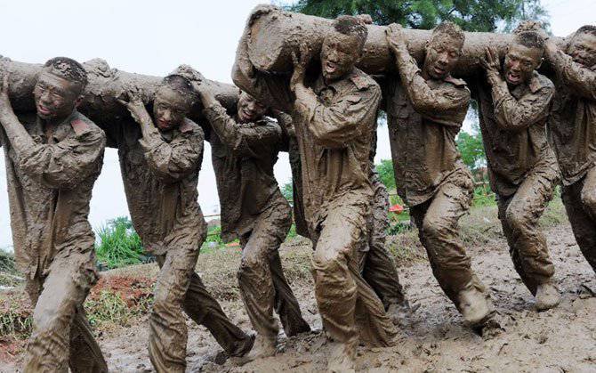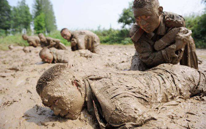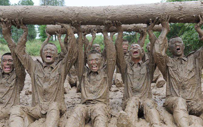 Фотографии постановочные. В жизни у бойцов такого взгляда не бывает во время прохождения полосы препятствий/марафона/учений. Не сомневаюсь, что это настоящие/действующие бойцы, но сняты они специально для красивой картинки в Китае это обычное явление. Политика партии такая, не может солдат выглядит недовольным или усталым в глазах общественности и уж тем более западной.