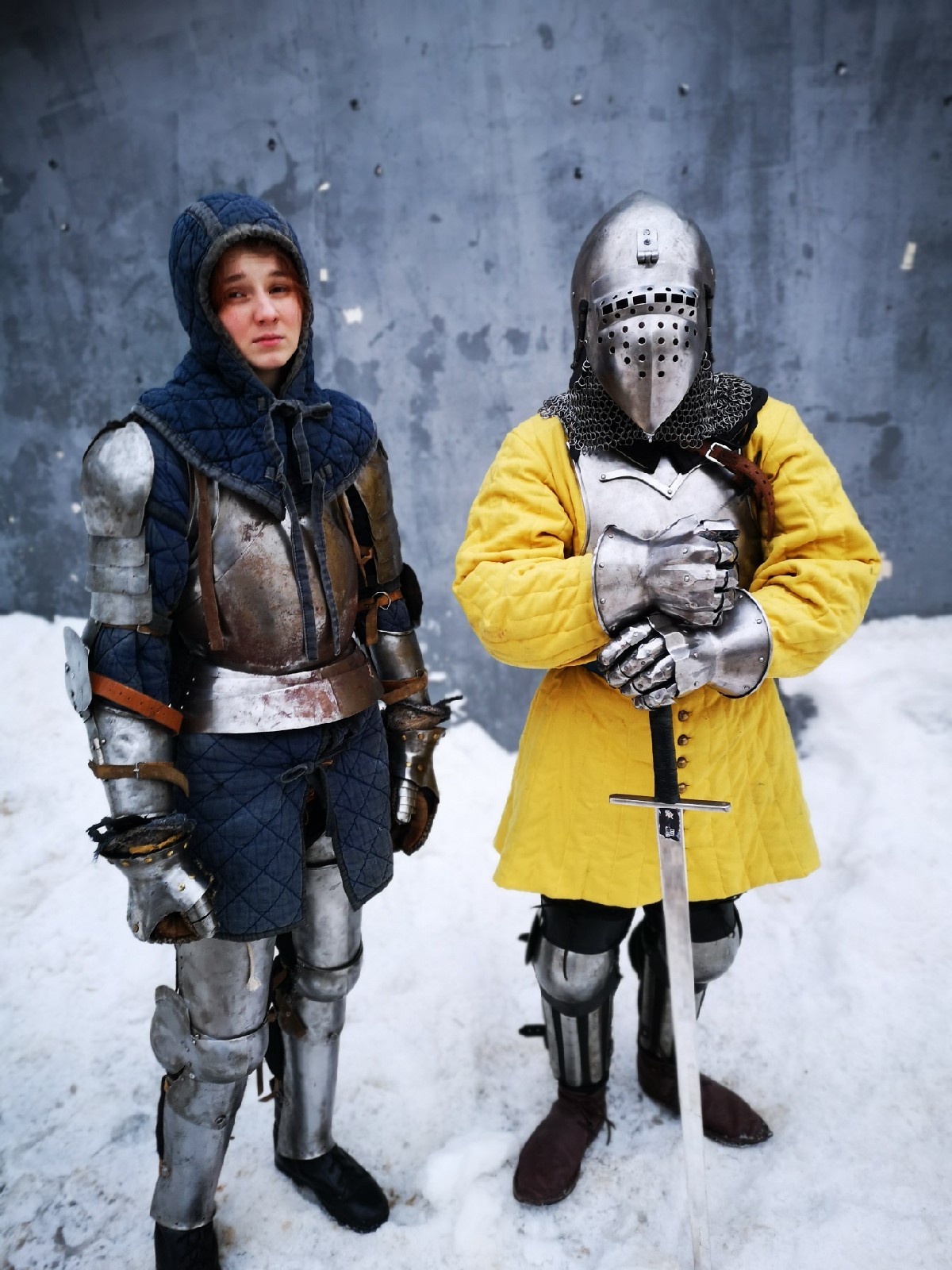 Фото постановочные, естественно. Сделаны в перерывах между упражнениями на телефон знакомого (ну потому что а почему нет). Доспех не мой, что-то клубное, что-то друзей, меня одели, чтобы потренироваться. Как говорится, я его слепила, из того что было =)