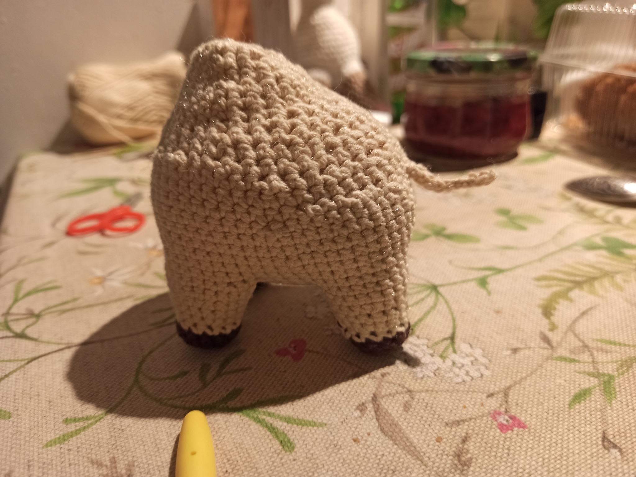 Рожки получились разной толщины, что странно, вязала то по одной схеме, и 100500 раз перепроверила на ошибки. Все равно один толще. Хех.