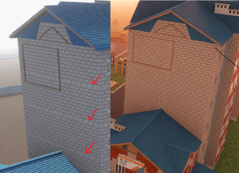 И мне так резал глаз кривой рисунок кирпича на многоэтажке, что я все-таки решился его исправить, из-за этого вылезло много сложностей, но я победил.