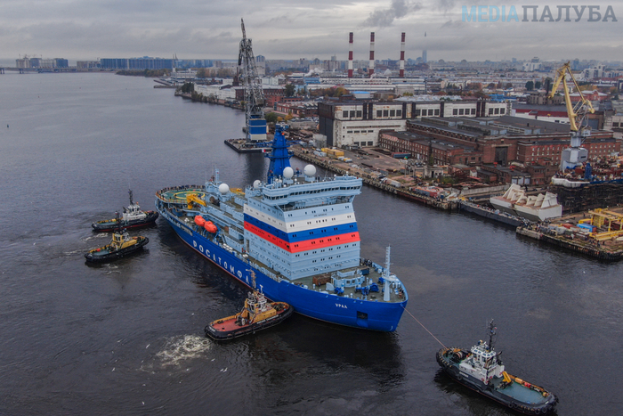 14 октября второй серийный атомный ледокол проекта 22220 «Урал» покинул достроечную набережную Балтийского завода (входит в состав ОСК) и взял курс на Финский залив, где приступит к выполнению программы заводских ходовых испытаний.