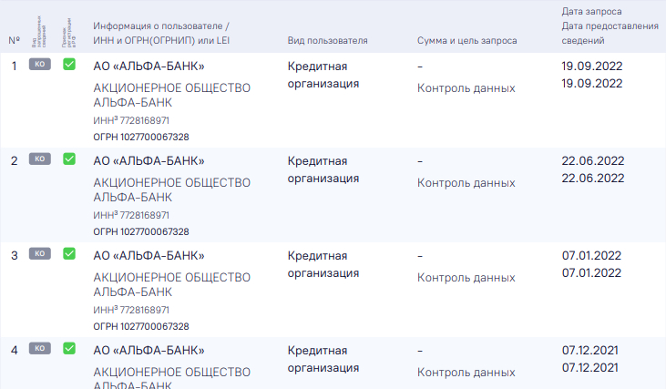 5. Скачиваем ее в папку из п. 1. Открываем, смотрим, кто и когда смотрел в нашу душу, точнее историю. Вспоминаем, а не я ли запрашивал кредит на такую то дату. Если просил то, на 6 месяцев вы дали разрешение копаться в вашей КИ, это если не брали кредит, более 6 месяцев, если взяли (на весь срок кредита).