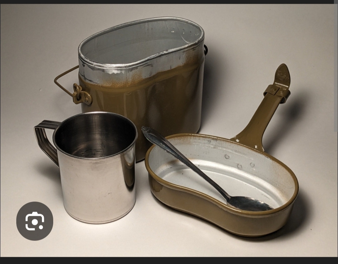У котелка крышка используется как тарелка или сковородка. Мне в армии довелось регулярно пользоваться армейским котелком. Я рекомендую именно его потому, что он имеет почкообразную форму (овальный , приплющенный) и легко поместится в маленький рюкзак.