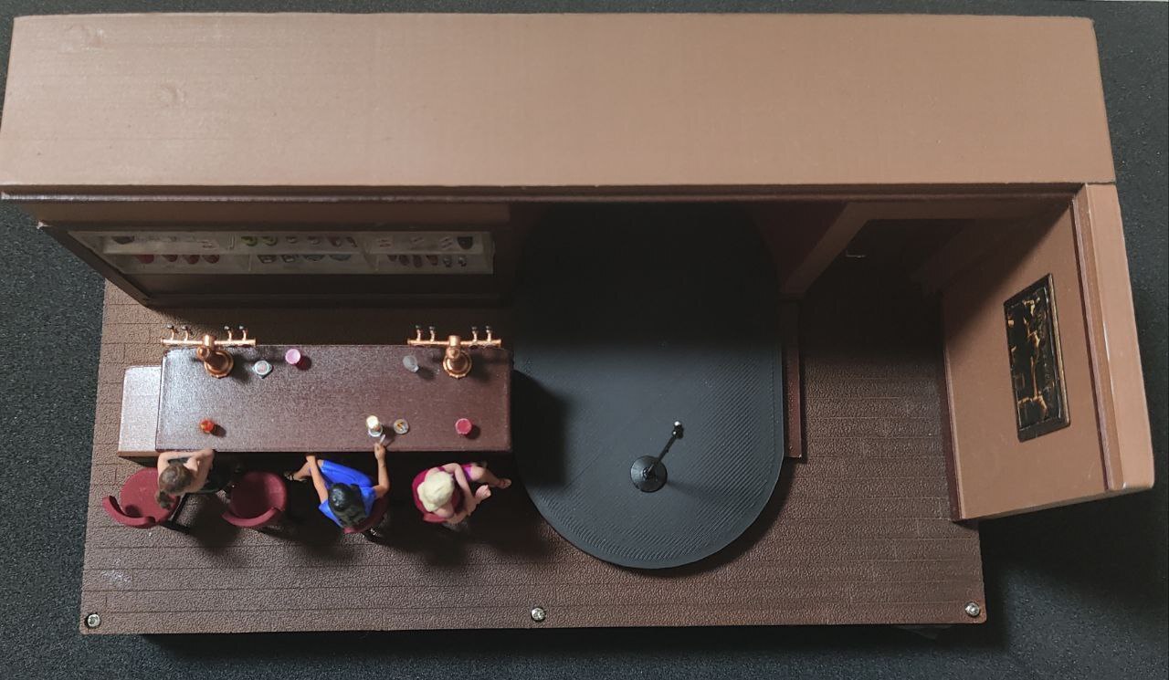 - Свет: Мерцающая подсветка бара создаёт эффект ночного клуба