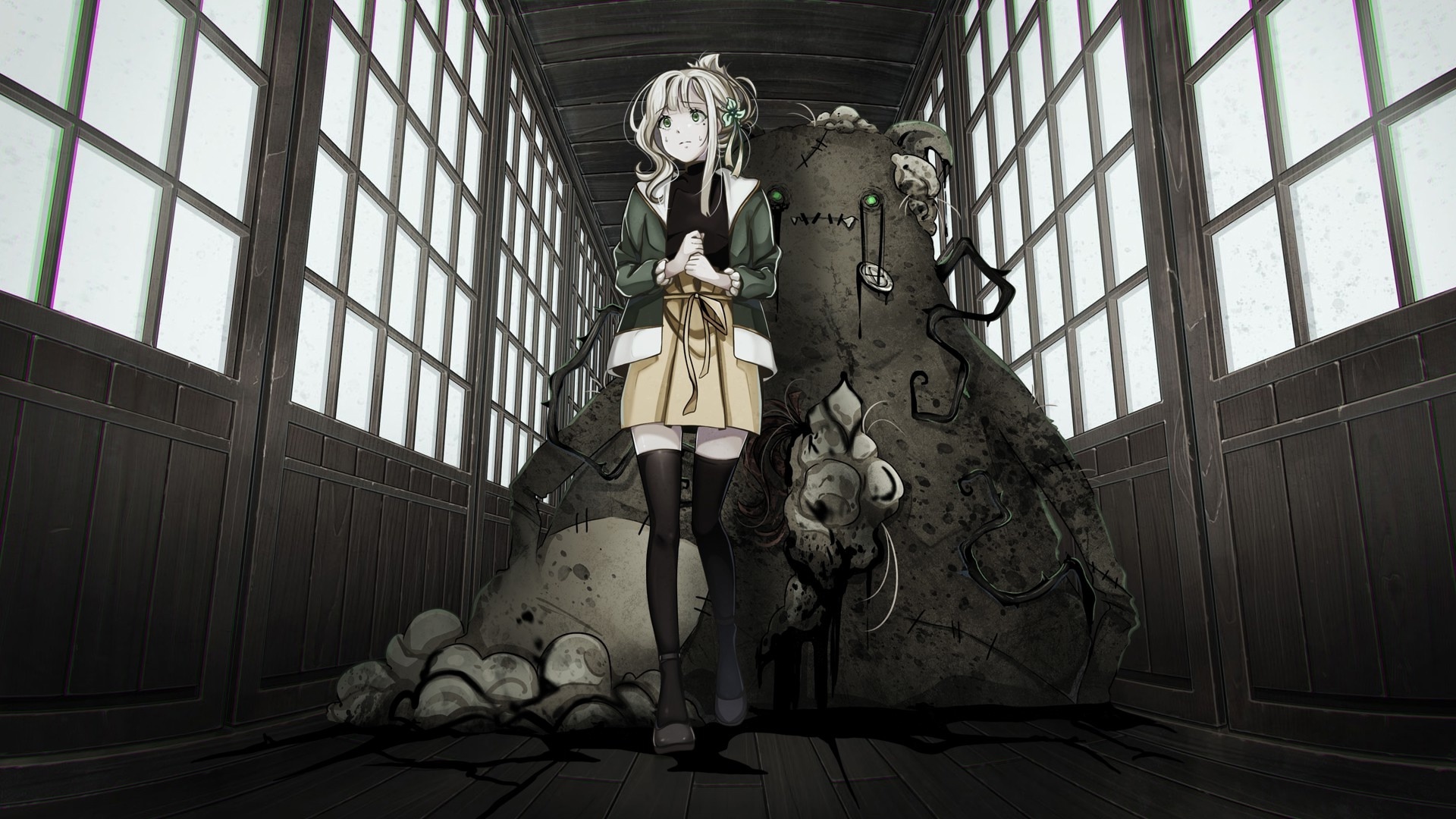 Помимо этого, необходимо отметить, что действие игры происходит в Японии и видно, что разработчики ей активно вдохновлялись. Отсюда и упор на культуру «маскотов», различных ритуалов, да и саму игру можно назвать кайдансю – сборником различных страшилок, которые в Японии крайне популярны. Однако под всем этим, как минимум для автора обзора, скрывалась некоторая фальшь. Мы видим на иллюстрациях и фонах множество вполне знакомых образов Японии: маленькие детские площадки, классические набережные, традиционные дома, интерьер старых деревянных японских школ и т.д. И хотя ко внешнему их облику нет претензий, в целом это всё выглядит словно самураи в американском кино – экзотический элемент, вырванный из естественной среды, а, значит, потерявший целостность для того, кому эта эстетическая и дискурсивная среда является родной.