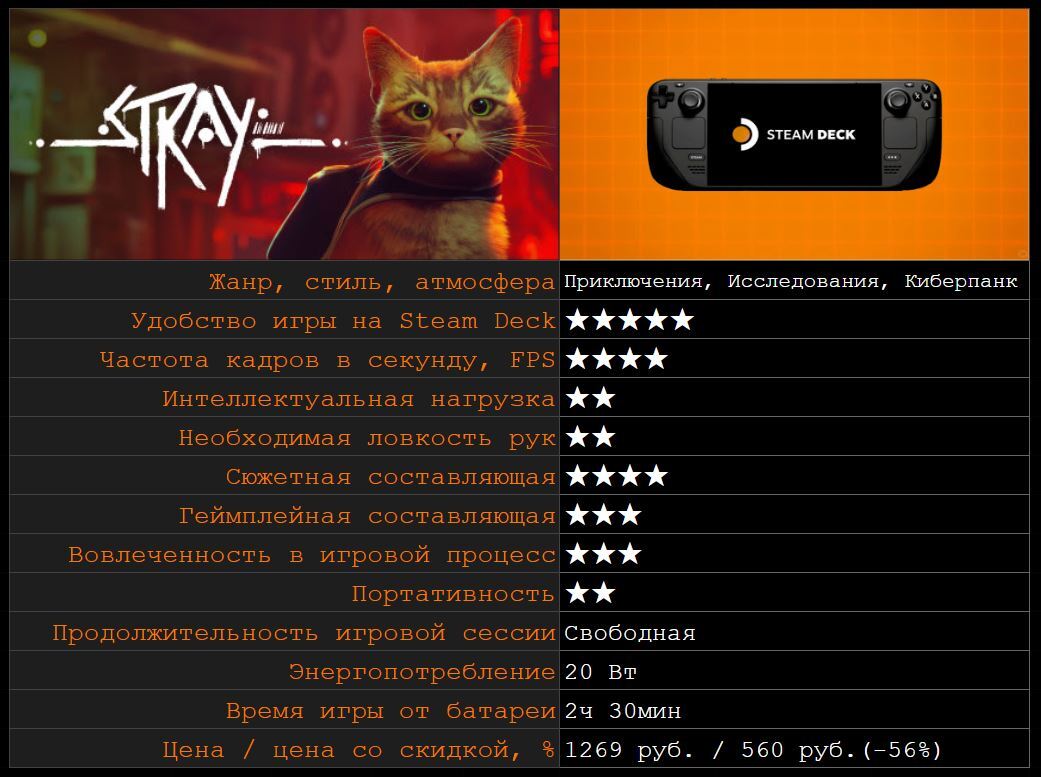 Stray – кнопок значительно больше, почти все, но их не требуется нажимать все сразу. В некоторых случаях управление проще чем в Little Nightmares, за одним исключением, плавно в дело входит правый стик, учимся управлять камерой. По началу можно его вообще не трогать, камера сама поворачивается в ту сторону куда следует кот, но потом это будет ключевой момент игры, правый большой палец должен приспособиться к не сложным задачам. Портативность приемлемая, время игры без зарядки менее 3х часов.