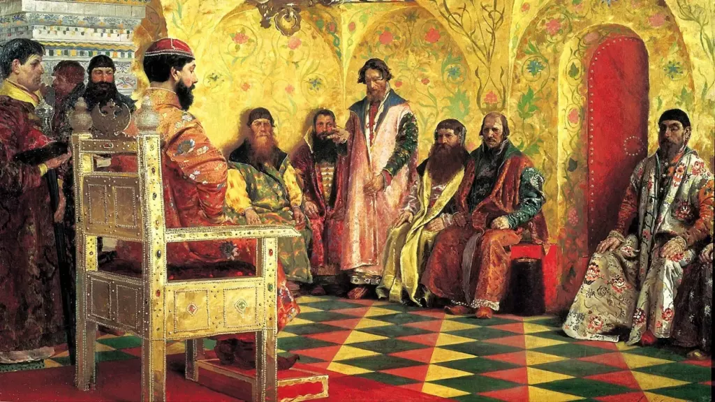 В Древней Руси существовал настоящий культ сидения. Когда человек стоит, его положение менее устойчивое, чем когда он сидит. Поэтому сидящий на троне царь своим видом олицетворял прочность и незыблемость царской власти.