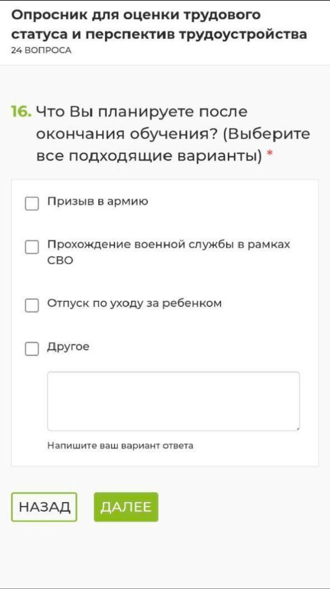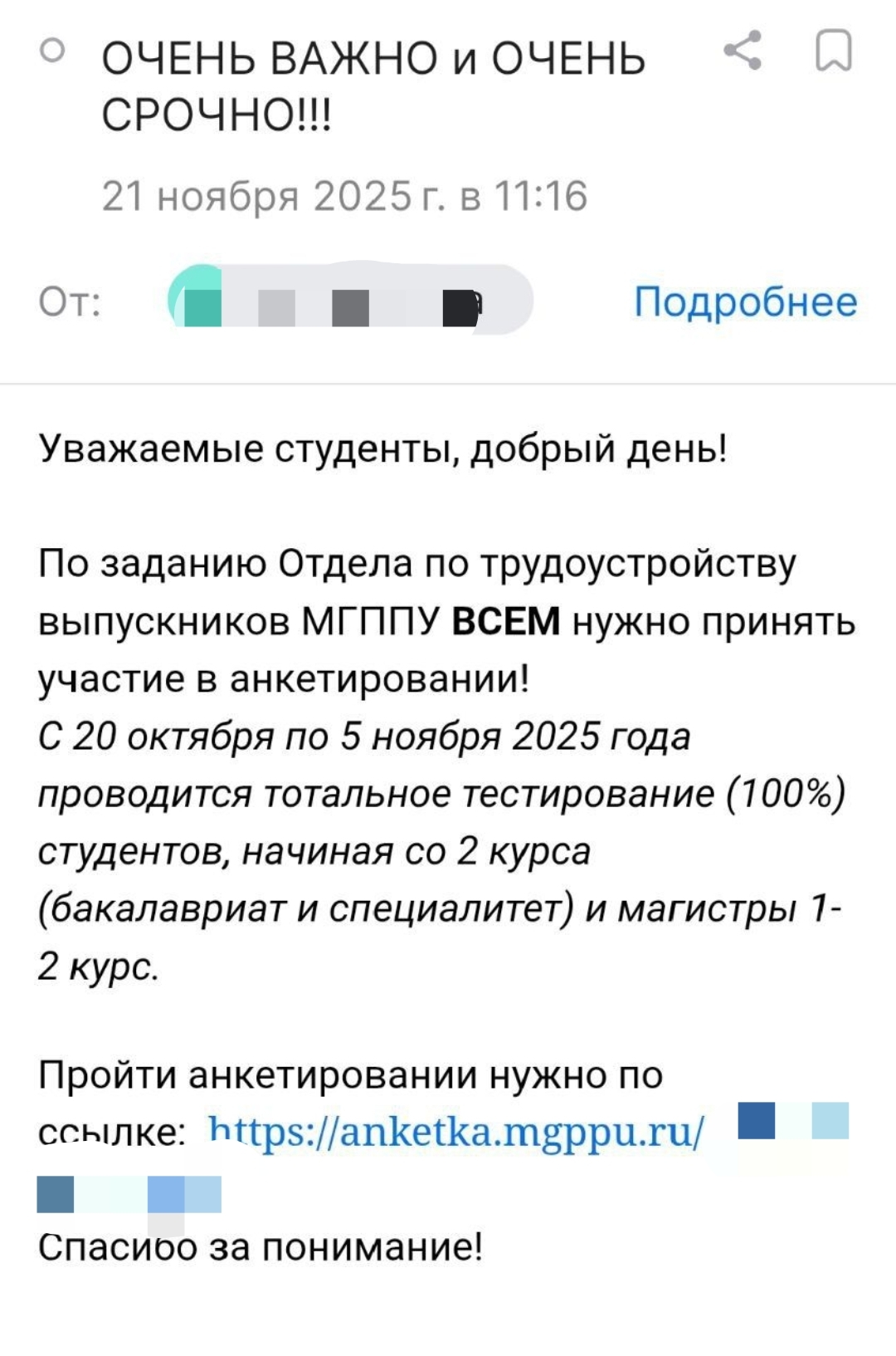 2 user11069733 Три пути 14 дней назад У знакомого вуз МГППУ требует пройти обязательное анкетирование отдел трудоустройства Предложенные перспективы в вопросе 16 просто сказочные. Студенты Москва Трудоустройство Опрос Длиннопост 1 Ещё 0