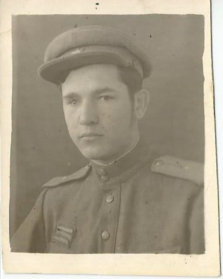 На фотографии запечатлен младший лейтенант в полевой форме одежды образца 1943 года с тремя нашивками за ранение - одно тяжелое и два легких. Наград у офицера, успевшего понюхать пороха, нет…