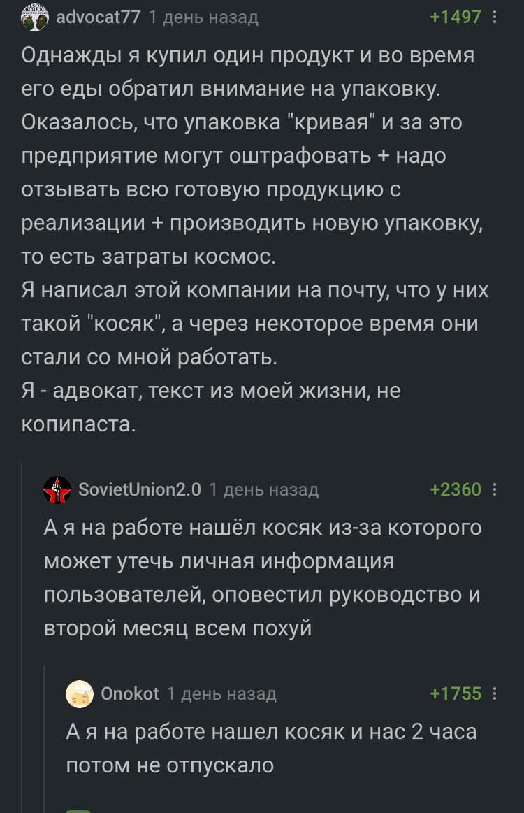 22 Stan11109 4 года назад Баяны Три разных подхода к работе #comment_196529551 Работа Баг Юмор Комментарии на Пикабу Скриншот Ещё 0