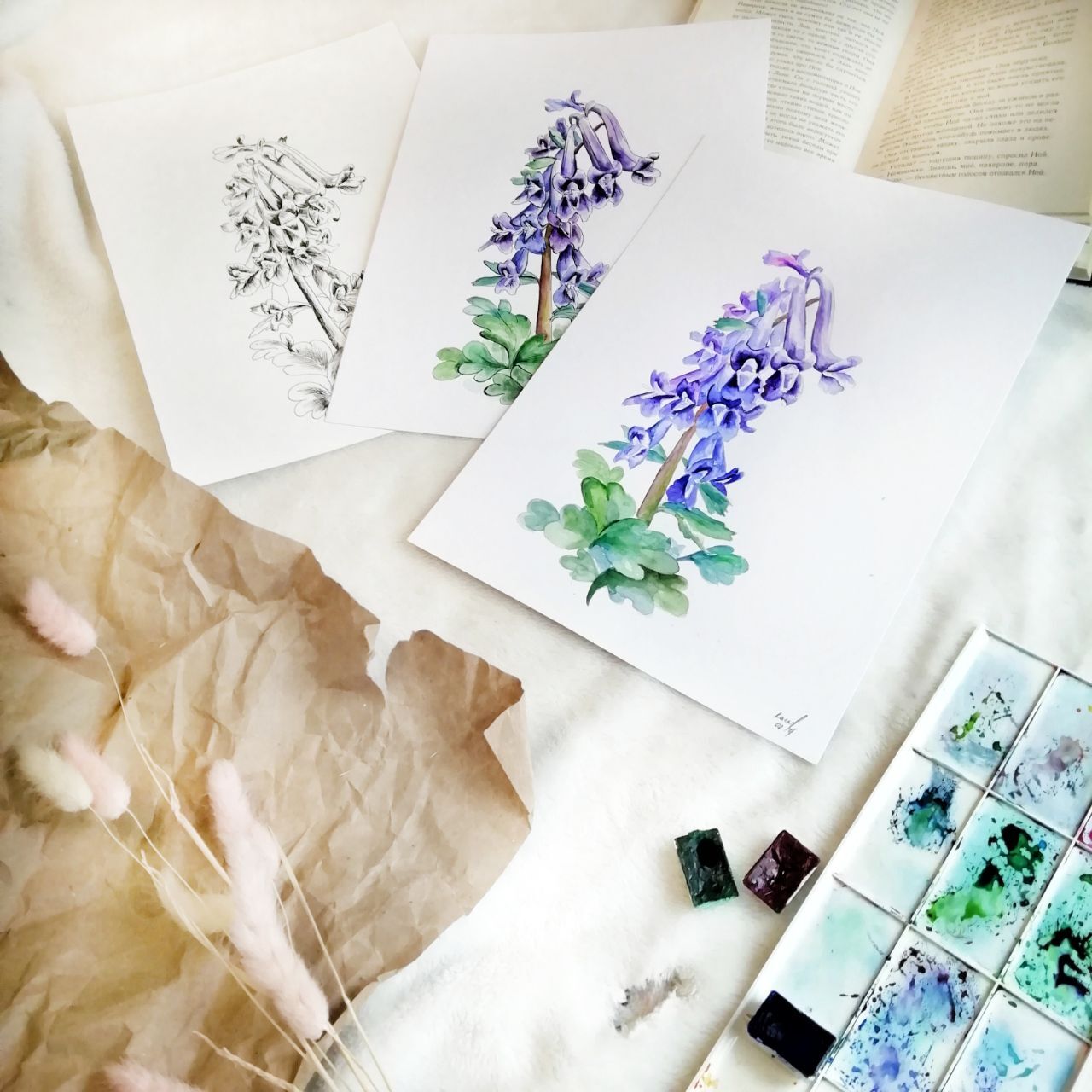 2 - смешанная техника: акварель+ графика