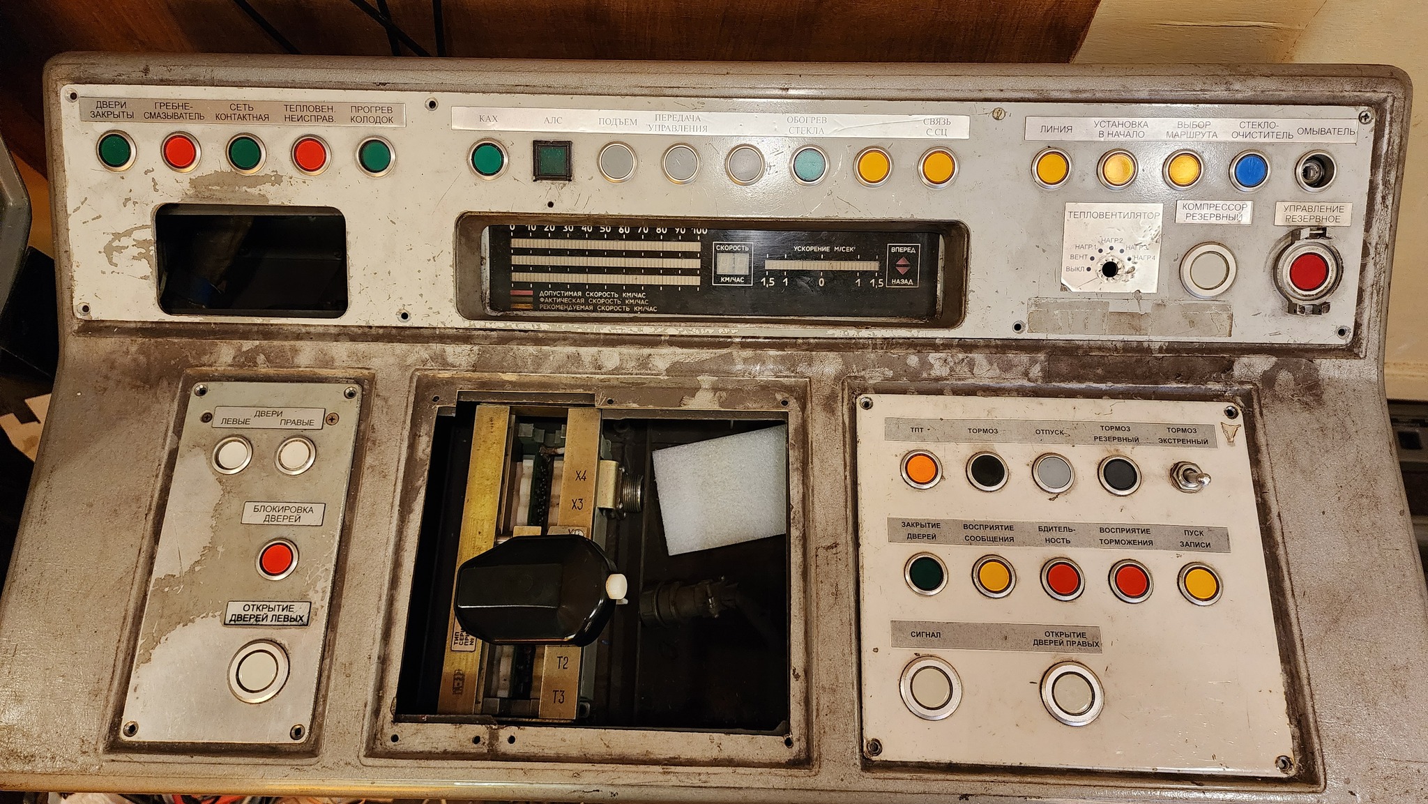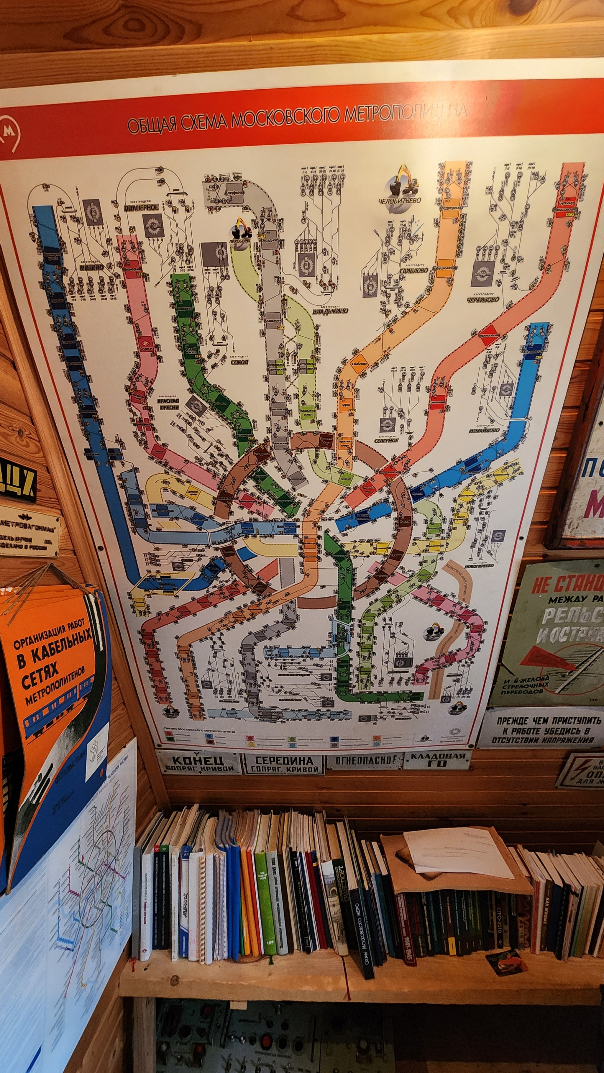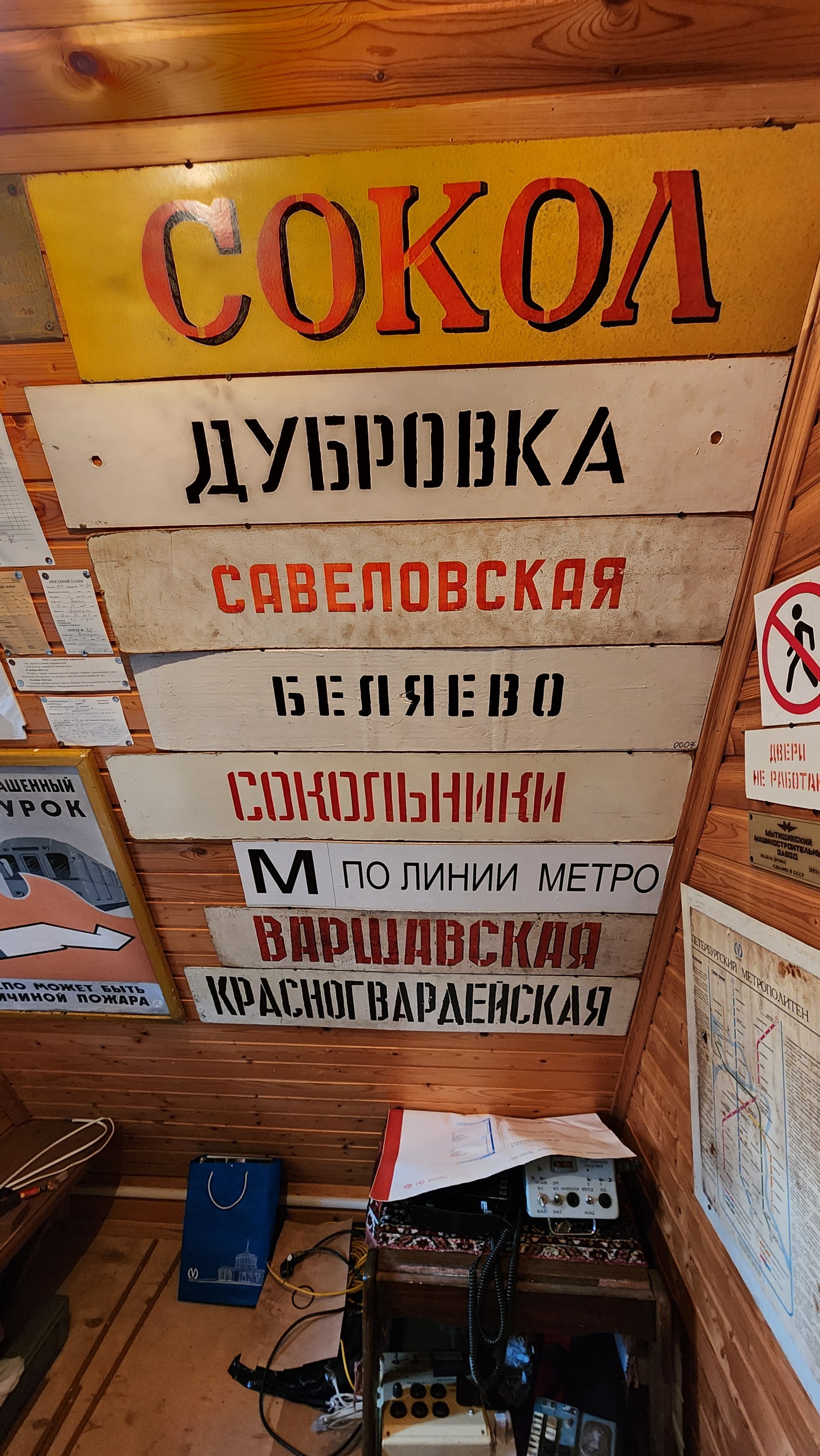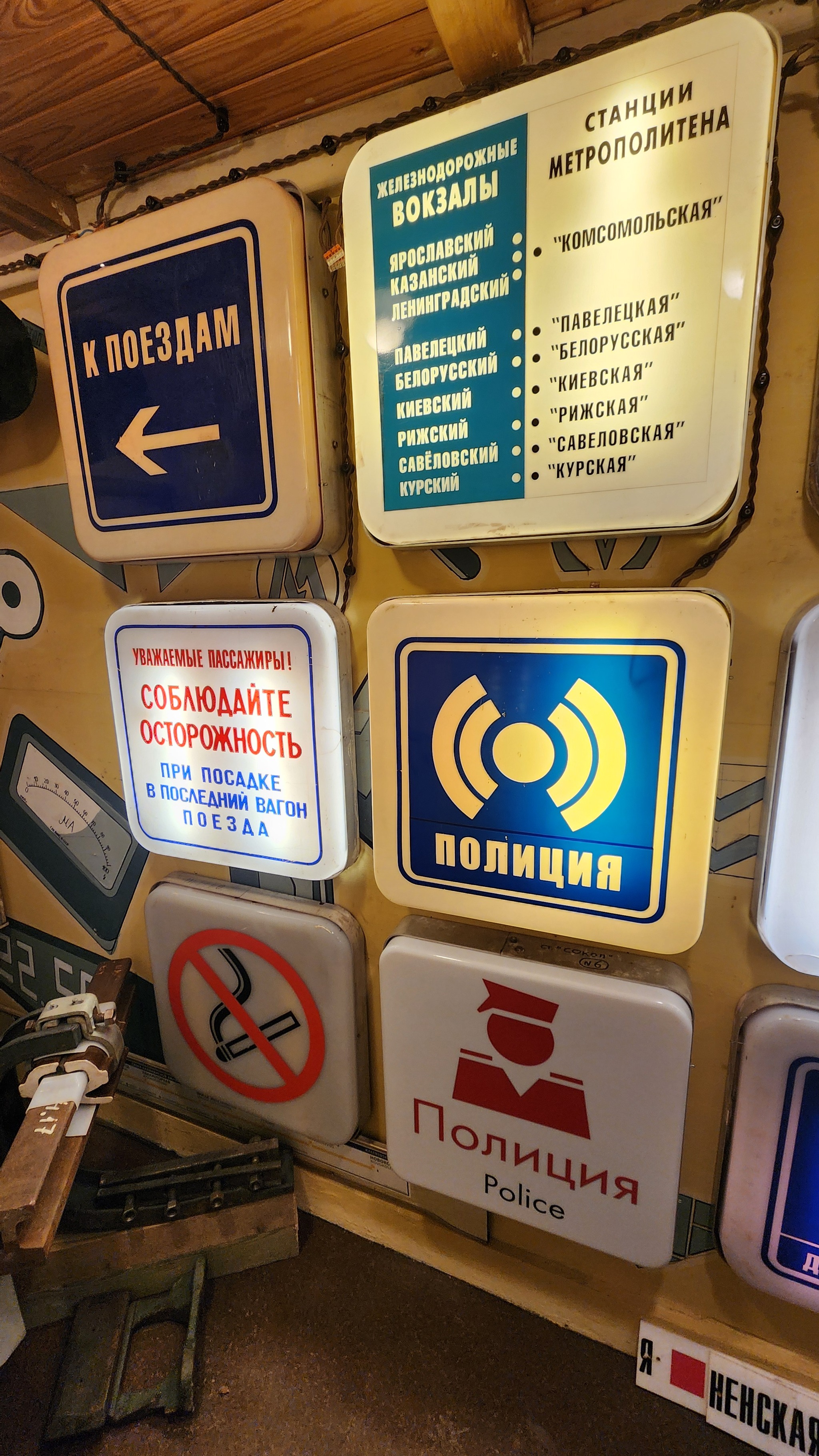 Турникеты на входе, таблички, связь с водителем, семафоры, пульты машиниста, исполнительный механизм управления тягой.. в двух маленьких комнатушках не кончается интересное.