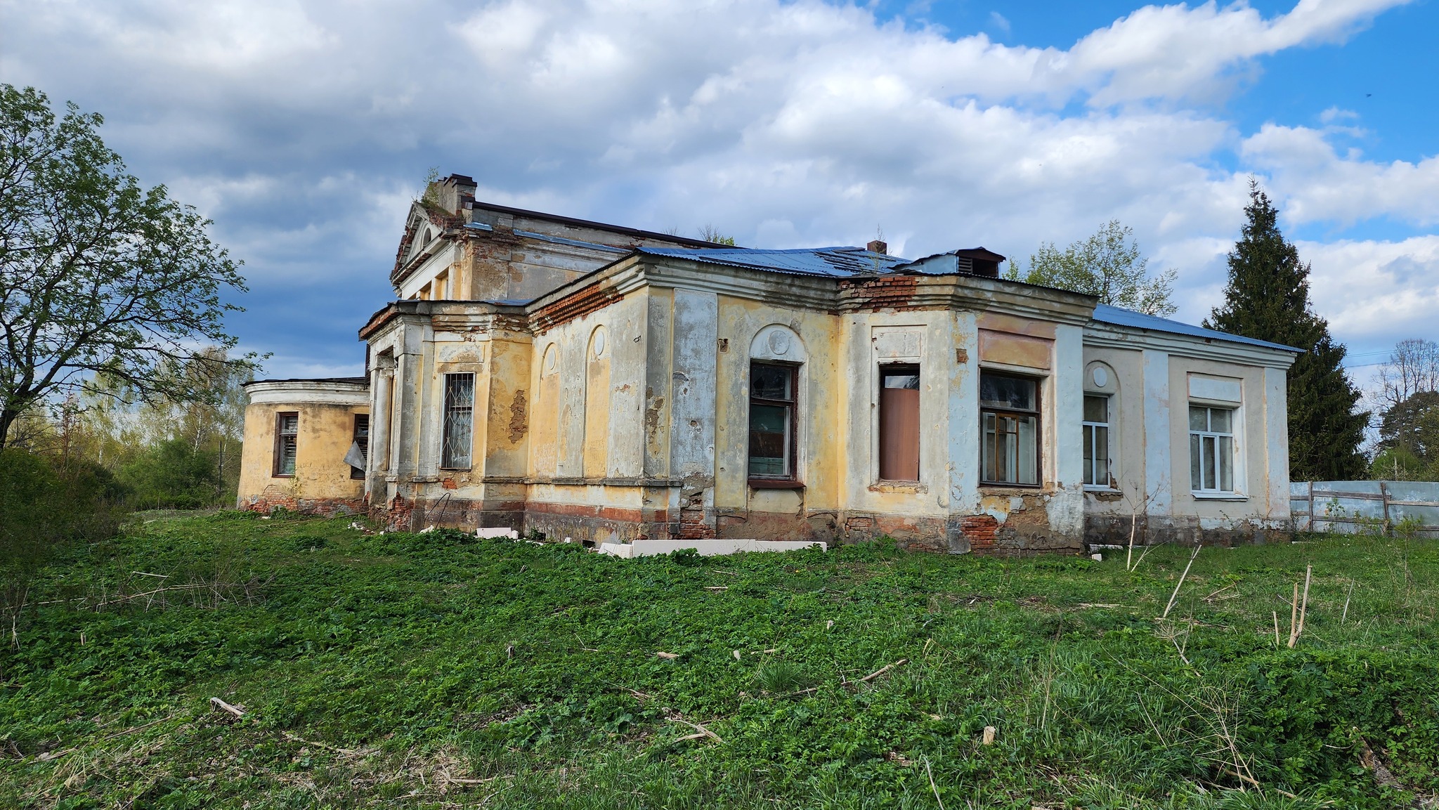 Мы могли бы проехать по двум магистралям, но мы едем через Верею для продолжения сегодняшней поездки по мелким дорожкам, мастерски уворачиваясь от траффика и пробок. И пока мы едем, я пытаюсь вспомнить, что это за точка и был ли я там раньше, или сохранил "на будущее". Ну, теперь был. Здание 1900-х годов, успело побывать главным усадебным домом, школой, библиотекой, избирательным участком. Планировку меняли множество раз, следы кладки разного возраста видны везде.