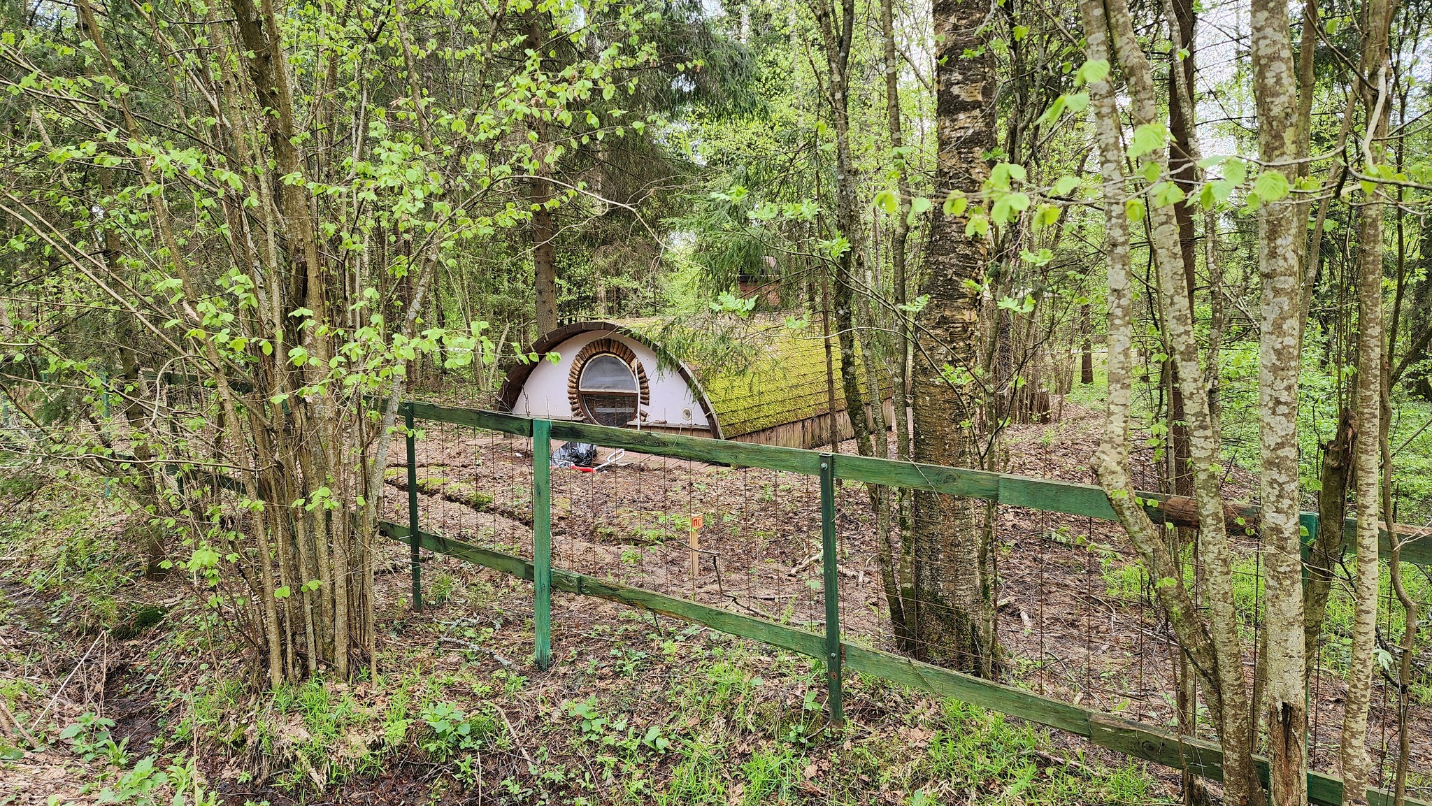 Увы, дорога ( 55.752171, 36.242638 ) доступна примерно также, вода начинается вместе с кустами. И получается странно. Мы уже доехали до точки, дождь ушёл на Москву, не догонять же его. Поэтому мы сперва едем поесть в Можайск, а дальше - смотреть домики Хоббитов ( 55.450776, 35.967207 ).