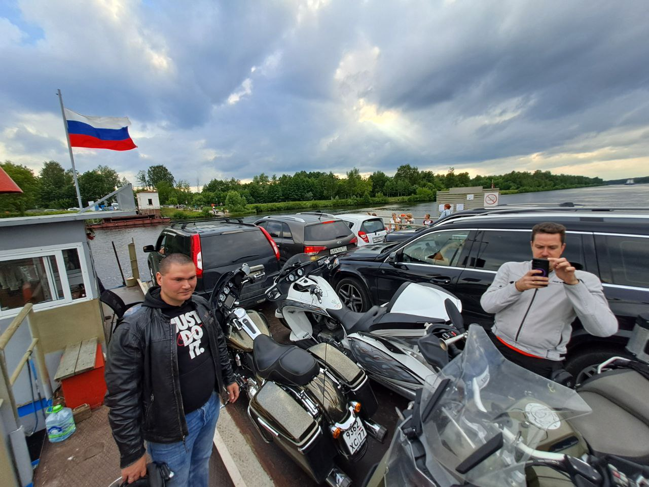 Как настоящие каферейсеры, мы выехали, не торопясь, в половине второго с бессмысленной надеждой успеть к 7 обратно в Москву. Harley-Davidson Street Glide, Victory Vision Tour Arlen Ness и BMW R1200GS Adventure LC поехали.. жрать. После жрать заглянули к дедушке Ленину, ну и обратно. Так себе план, да? Точек не хватает, как и времени. Но, как я уже писал не раз, иногда путь это тоже "точка". И, если вы поедете в Дубну, я очень рекомендую вам в Мельдино свернуть на паромную переправу и поехать параллельно Дмитровскому шоссе через Раменье и Насадкино.
