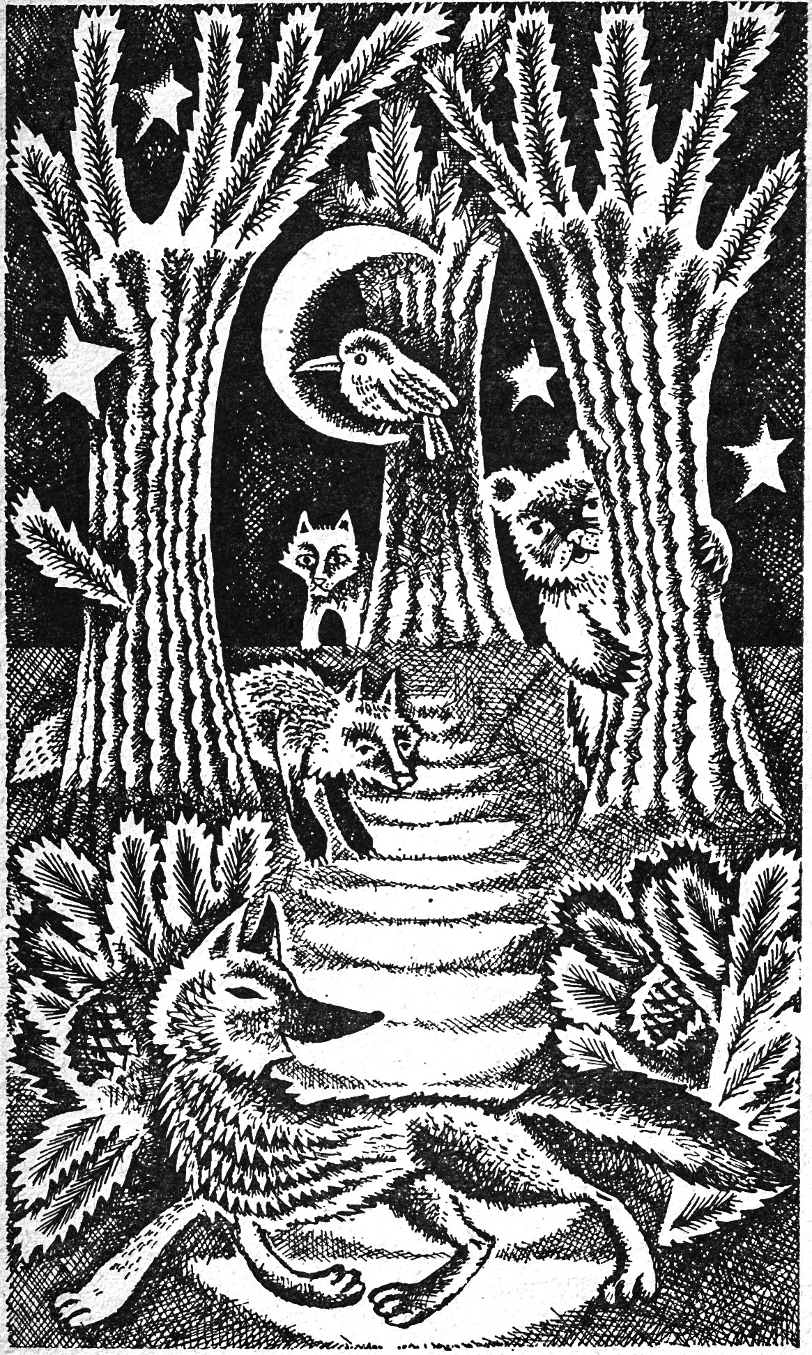 Вдруг из-за деревьев вышел страшный серый волк Гымры.
