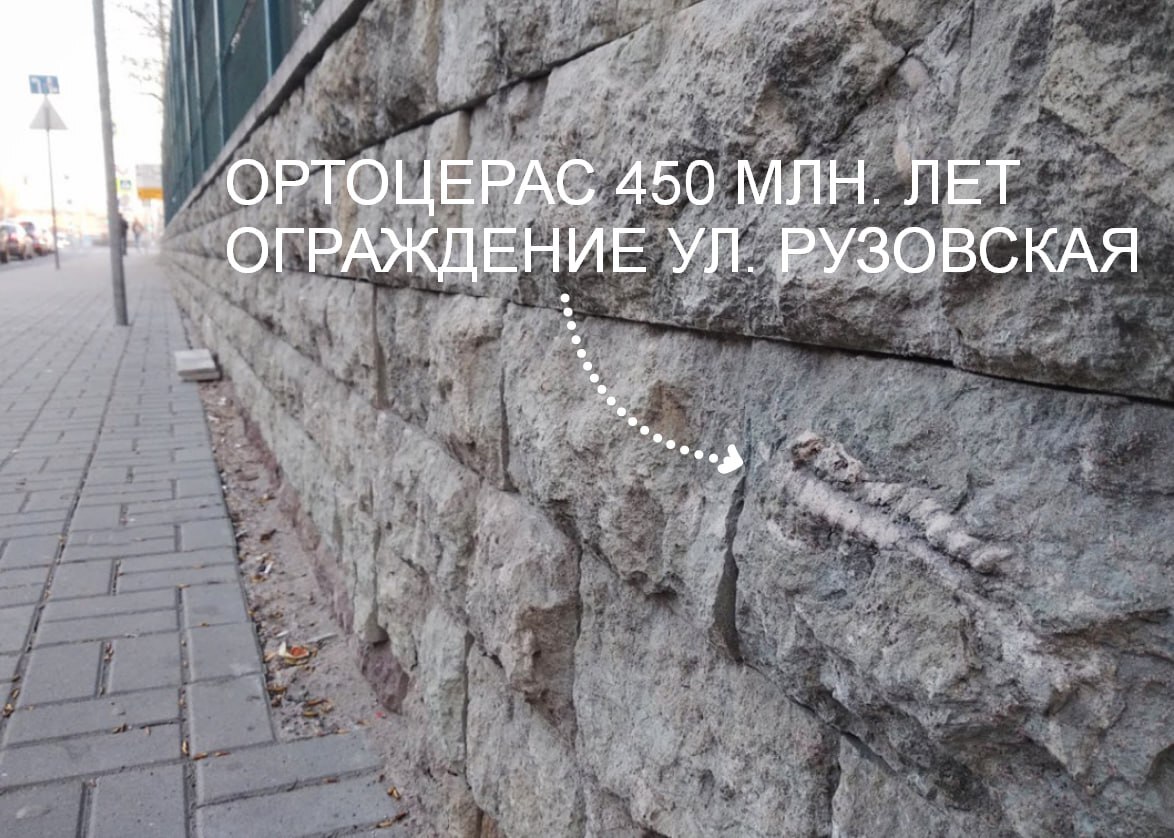 Например, на вокзале в Пушкине можно найти аммонит около решетки отопления и морские лилии в проходе, а также на бюсте Пушкина останки брахиоподов.