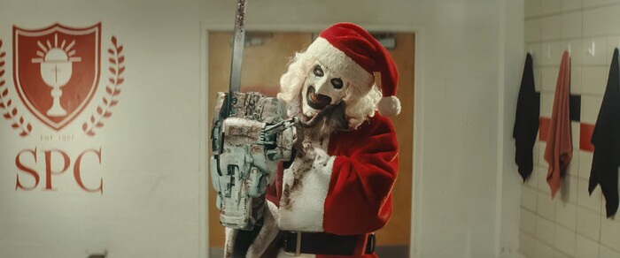 [Добавляю этот фрагмент уже после написания основного текста, так как успел подзабыть первый фильм. Читая отзывы и ища кадры из него перед публикацией, вспомнил ещё одну вещь, которая мне в оригинальном «Ужасающем очень понравилась. Это слом некоторых клише хоррор-жанра. Я не буду спойлерить эти моменты тем, кто ещё не посмотрел, скажу только, что пару раз за фильм я аж подпрыгивал на месте, настолько это было ловко и неожиданно. Например, фрагмент, где Арта казалось бы вот-вот победят, но он вышел из положения весьма внезапным образом.]