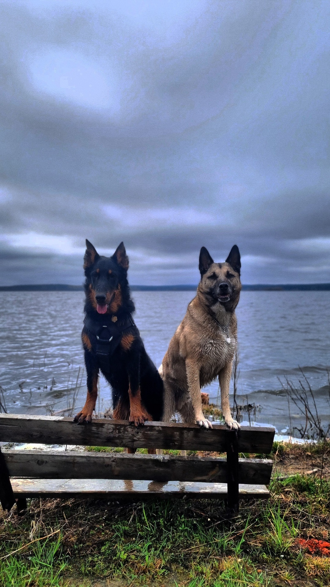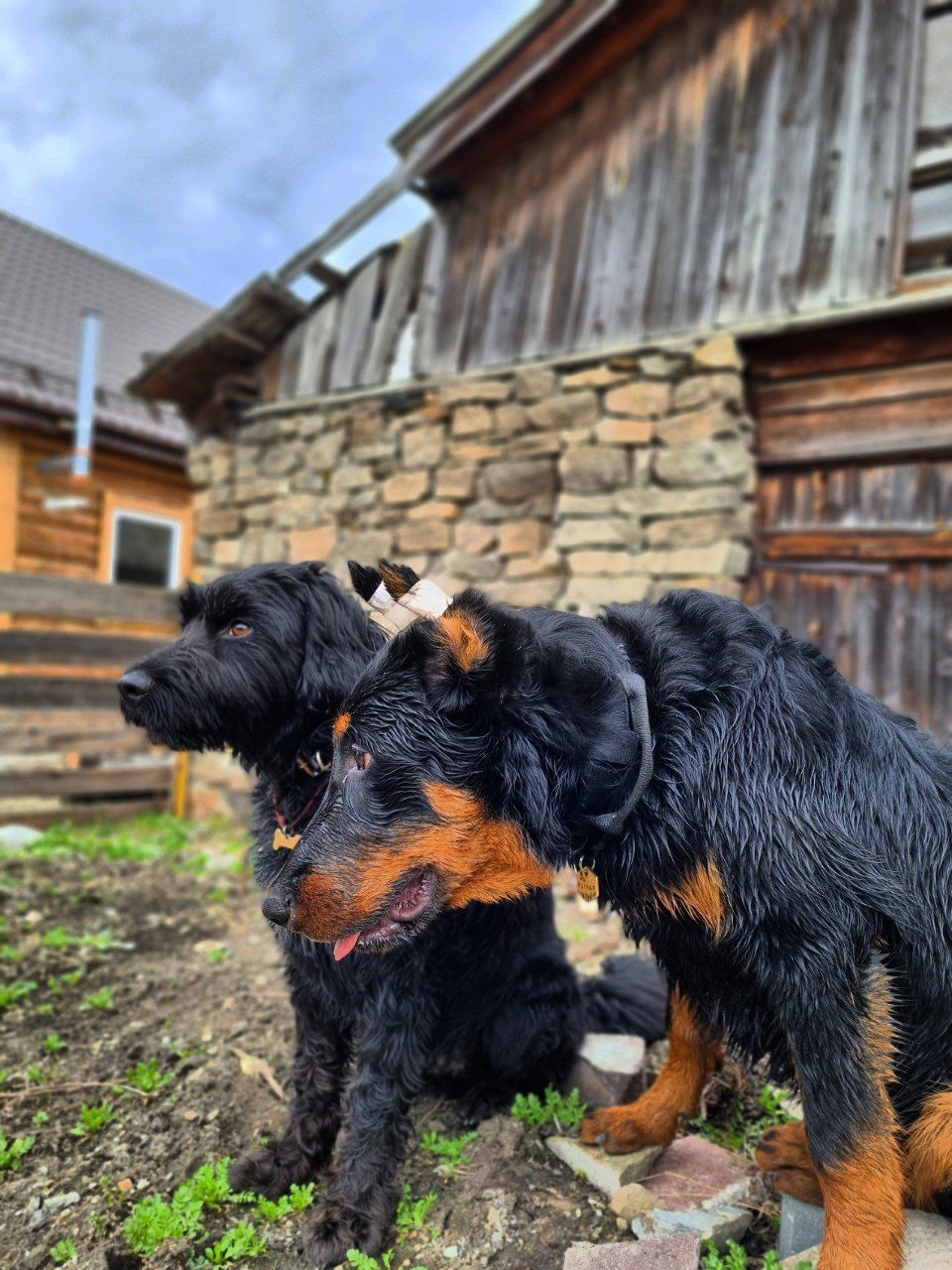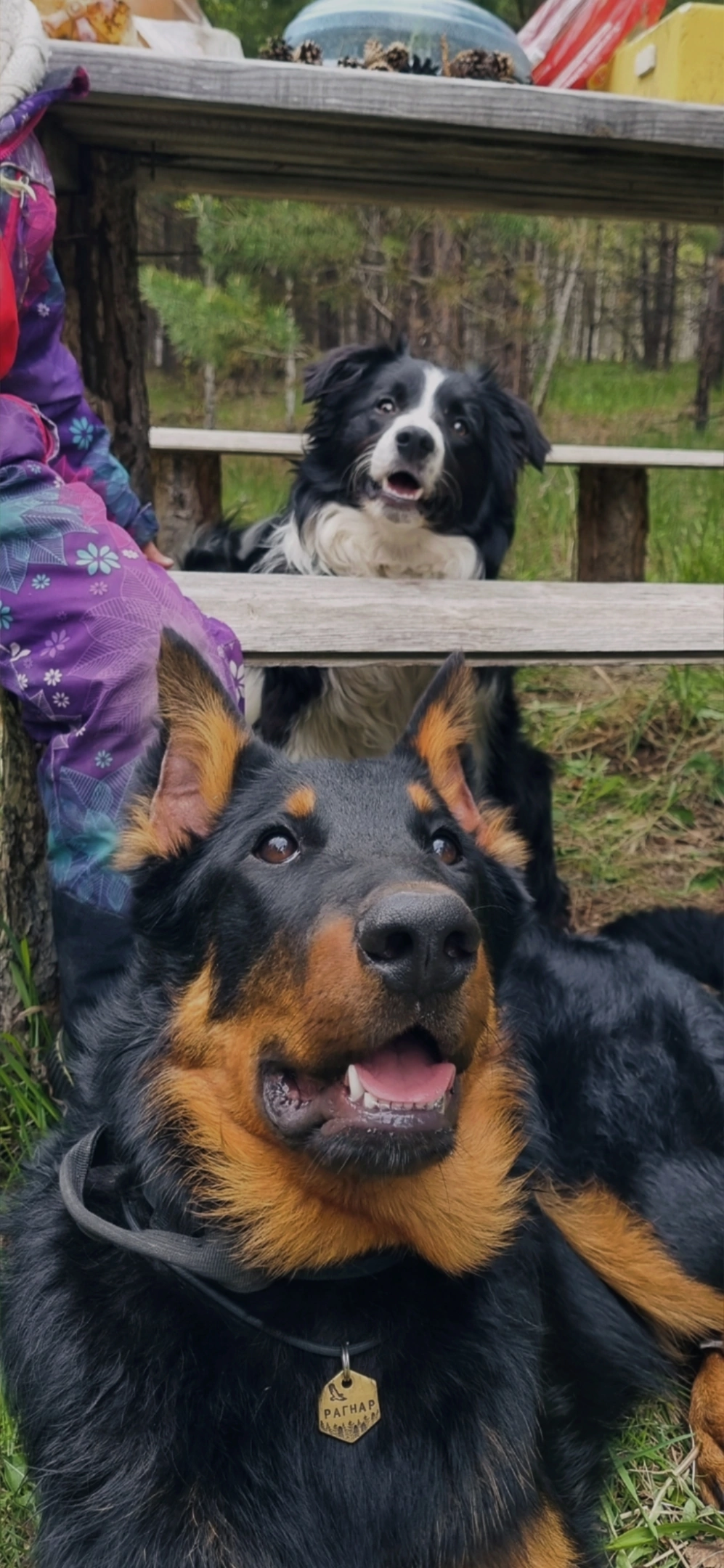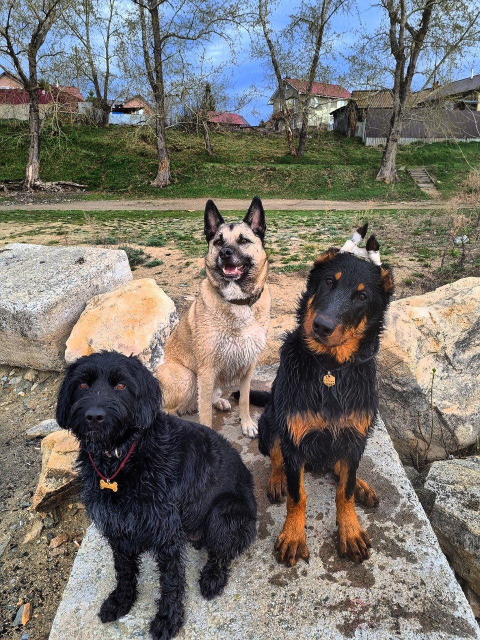 Познакомились с пастушками Шерри и Шанти, чудесные девахи. Сначала Рагнара очень невзлюбили, видимо от того, что он их больше в 2 раза. Хотя всем троим по 6 месяцев. Однако чуть погодя полюбились друг другу.