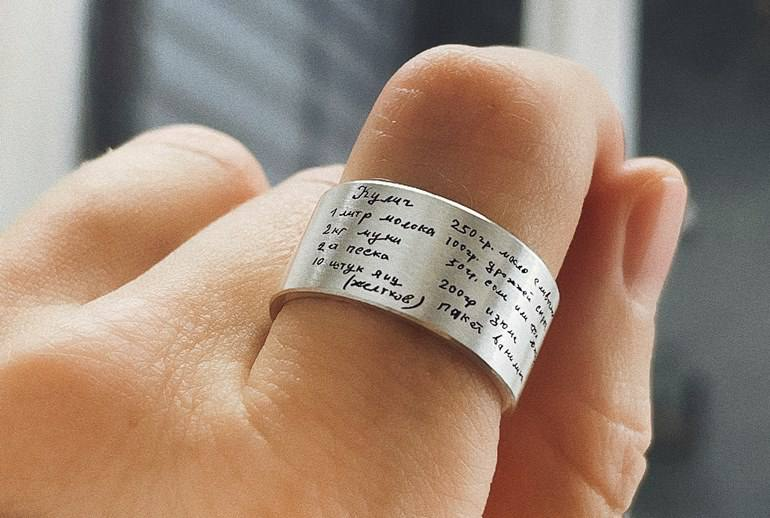 8 TvoiIstorik Трогательное. Кольцо с рецептом кулича выковали российские умельцы 14 часов назад Его воссоздали в оригинальном почерке одной из бабушек, которая написала его на обычной бумажке. Бренд «Куда тек Нил» Россия Украшение Мастер Подарки Бижутерия Изделия из металла Длиннопост 3 2 1 Ещё 0