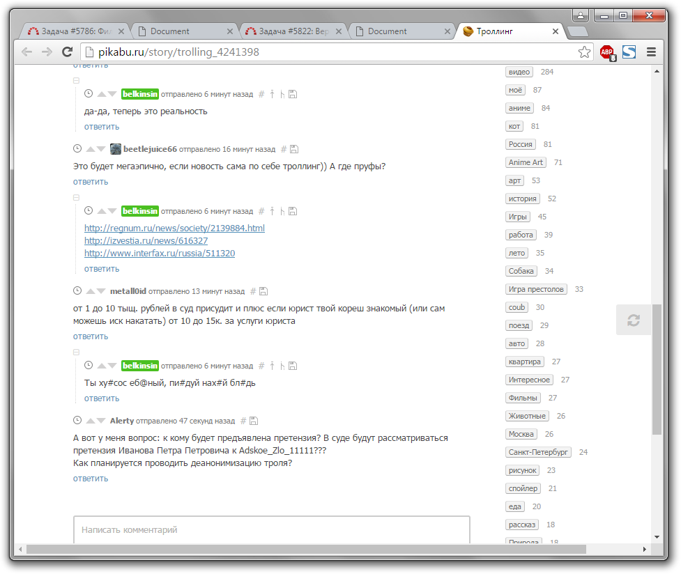 Факт издевательств и оскорблений (троллинга, как это называют пользователи интернета)