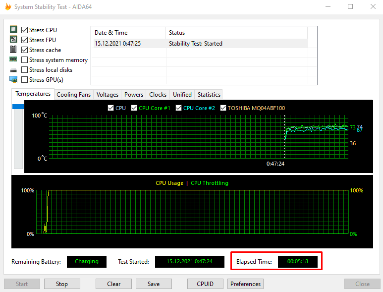 При этом тест на стабильность в AIDA64 процессор проходит нормально и не показывает наличие тротлинга: