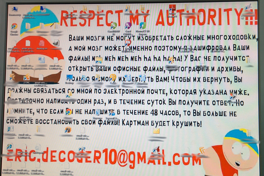 Далее на рабочем столе оставляет файл с инструкциями. И e-mail вымогателей (на gmail.com) для переговоров о выкупе ключа дешифровки.