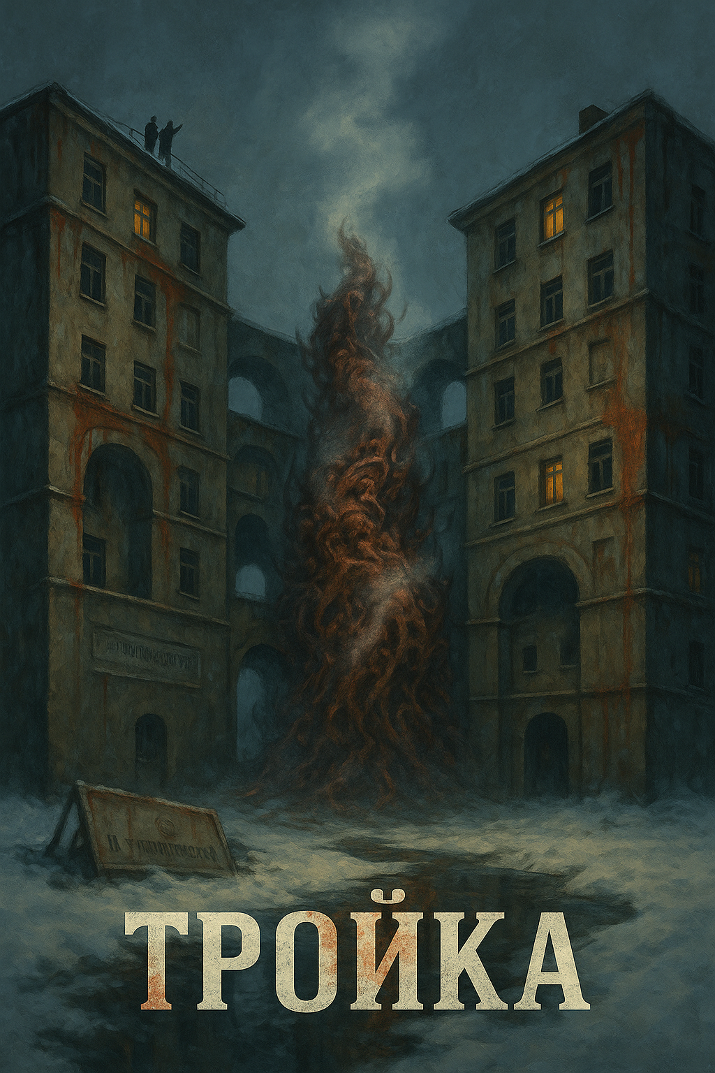 Когда всю Тройку окутал зловещий туман, собравшийся в сгустки жирного серого конденсата на окнах, Олеська и Марк осознали: настал час расплаты за беспечность. И комок тьмы, обретший подобие плоти, попытался даже проникнуть в щель форточки, но был тут же отброшен ложкой, схваченной прямо из тазика с салатом. Провожая «гостя» взглядом, все выглянули во двор: в клубах пара там бродили создания, подобные тому сгустку, что снасильничал тётю Олю. Антропоморфные на первый взгляд, при ближайшем рассмотрении они оказывались мало похожими на людей. Нет, это были какие-то лысые обезьяны с длинными ручищами, обнажённые, увешанные вторичными половыми признаками, безликие, вывернутые наизнанку, сплющенные и растянутые. Все они расползались по подъездам из котельной, будто придя на замену прежним жильцам Тройки. Пора было не собираться, а бежать! Но вот только куда? Задние ворота давно заперты, и на улице опасно: идти напролом — верная смерть. Оставался лишь один путь — пробираться через здание в надежде найти выход на второй этаж, где ещё не успели установить решётки. Марк, как будущий архитектор, быстро оценил ситуацию: путь лежал до третьего подъезда, где сохранился переход между домами, а оттуда уже можно было попробовать спуститься по пожарной лестнице. Другого выбора не было, и пришлось идти почти вслепую, хлюпая непонятной жижей под ногами.