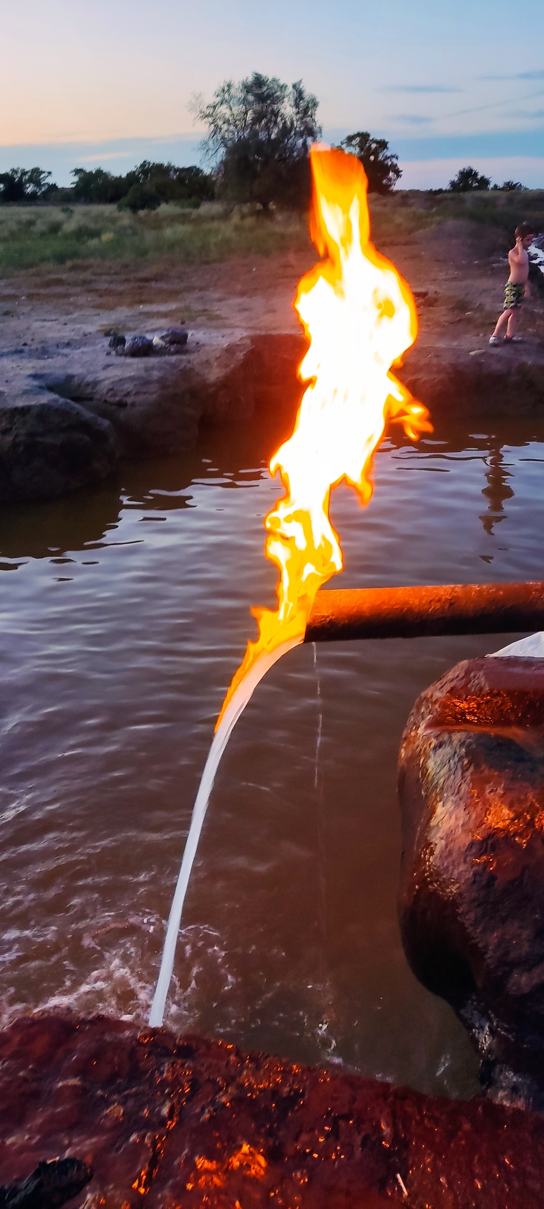 и да, это не химзавод) рядом вообще нет промышленности, это тупо где то в полях между сёл каких то...) Из трубы льётся минеральная вода с сопутствующим газом, который и горит