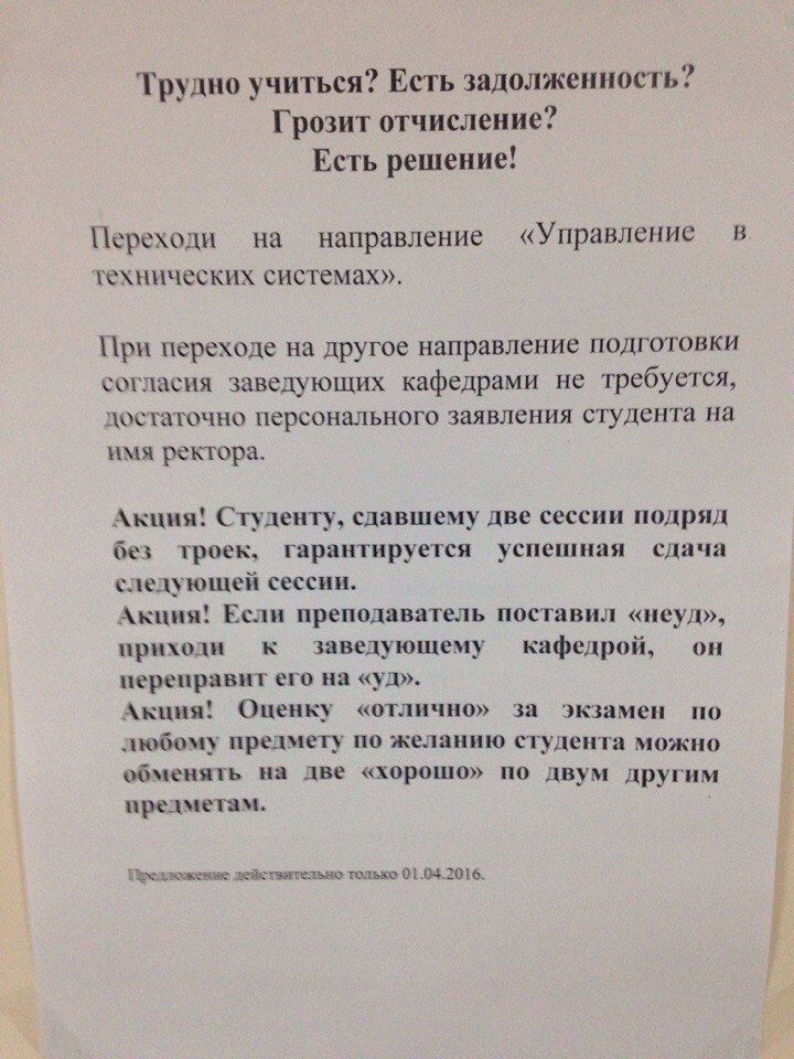 Объявление на стенах факультета.