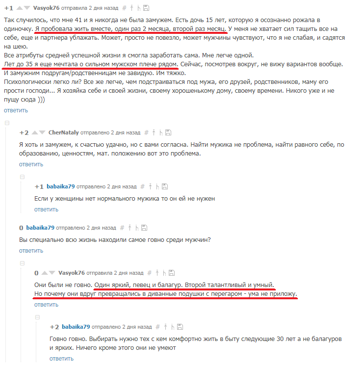 Был тут на днях пост и попалась вот такая собеседница. Сначала они выбирают тухлое мясо, а потом, придя домой, удивляются что есть его нельзя. В каменте прям вся суть многих одиноких женщин России.