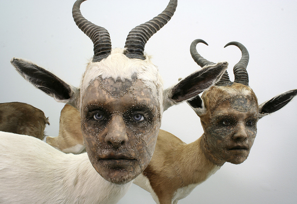Но самые пугающие чучела выходят из бруклинской мастерской скульптора Кейт Кларк. Если в мире таксидермистов есть кто-то стоящий дальше всего от хулиганистой и дурашливой Кат Су и ее Crap Taxidermy, то это именно Кларк. Ее работы выглядят жутковато и даже по-своему извращенно. Но они изначально именно таковыми и задумывались. Кто бы мог подумать, что человеческие лица вместо морд животных могут выглядеть так зловеще? Вызывает ассоциации с экспериментами доктора Моро из романа Уэлса.