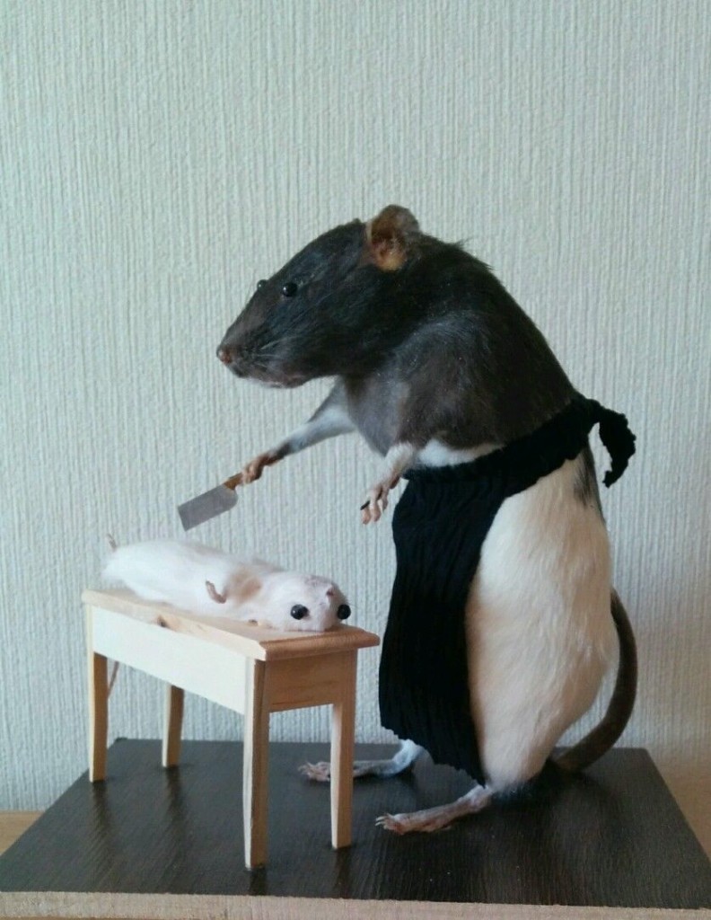 Сами мастера этого дела явно догадываются о подобном отношении и потому не лишены самоиронии. Насколько здоровой или нездоровой является такая ирония судить сложно, но создание намеренно жутких чучел теперь не остановить. В мире фрик-таксидермии уже появились признанные мастера мирового уровня, свои стили и даже жестокая идеологическая война с ортодоксальными чучельниками.