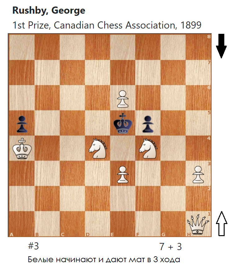 12 scootin Шахматы Трёхходовочка #101 2 года назад Трёхходовая композиция канадца Джорджа Рашби (George Rushby), завоевавшая первый приз турнира Канадской Шахматной Ассоциации в самом конце XIX века. Шахматы Шахматные задачи Задача Головоломка Ещё 0