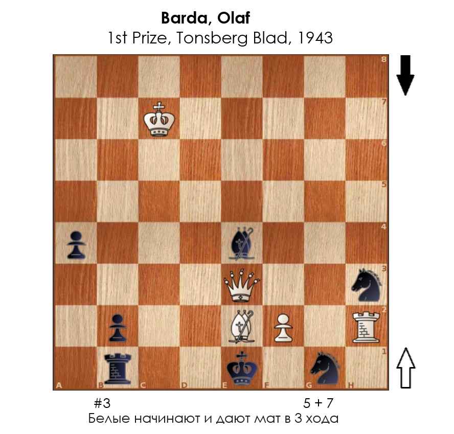 10 scootin 2 дня назад Шахматы Трёхходовочка #223 Трёхходовая композиция норвежского проблемиста и шахматиста, шестикратного чемпиона Норвегии, Олафа Барда (Olaf Barda , 1909 - 1971), занявшая первое место турнира норвежской газеты "Tonsberg Blad" в 1943 году. Шахматы Шахматные задачи Задача Головоломка 1 1 Ещё 0