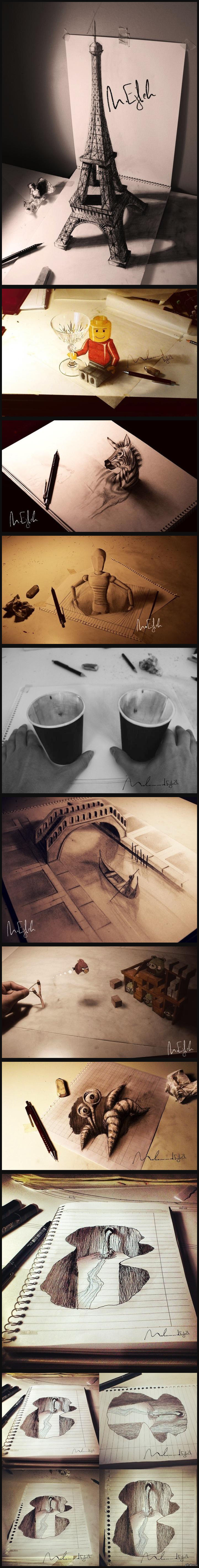 21 klemanad Трёхмерные карандашные рисунки 11 лет назад Один сирийский двадцатилетний студент-архитектор в перерывах между парами создает необычные 3D рисунки карандашом Рисунок карандашом 3D Тридэ Творчество Магия Длиннопост