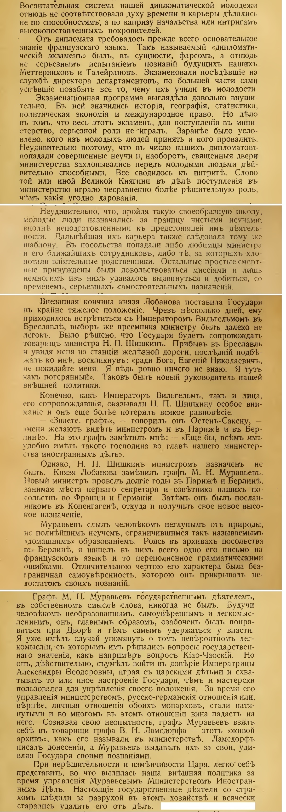 Из воспоминаний Е. Н. Шелькинга (работал секретарём в берлинском посольстве, а также в канцелярии министерства иностранных дел Российской империи, камергер Высочайшего Двора):