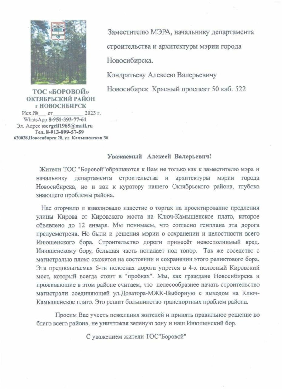 Так же, найдены старые документы, где ТОС «Боровой» обращался в Мэрию в 2024, где было еще одно ответное обещание, что дорога лес не затронет