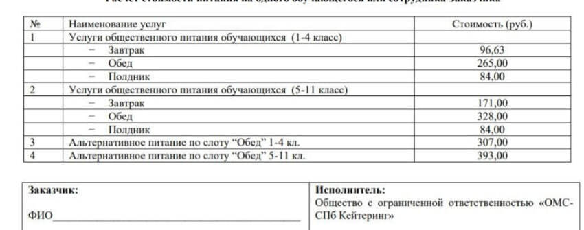 Это результат прихода в "Школу 800" нового организатора питания — компании "ОМС-СПб Кейтеринг" (питерские, но с юридическим адресом в подмосковных Химках). Хотя на сайте школы по-прежнему указан старый поставщик школьной еды — компания "Здоровое питание" (см. скриншот сайта).