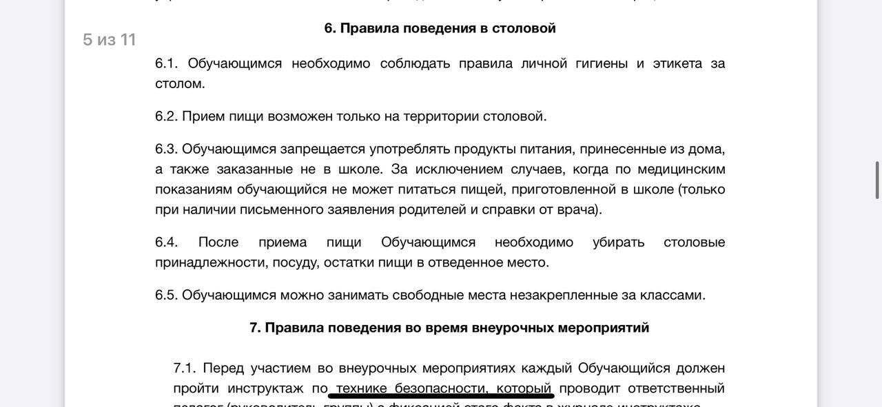 6.4. После приема пищи Обучающимся необходимо убирать столовые принадлежности, посуду, остатки пищи в отведенное место.