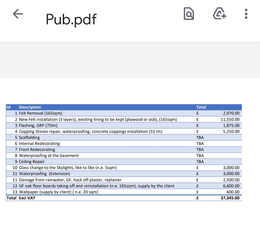 Там вся крыша паба в печальном состоянии, плюс разбиты два окна на крыши.