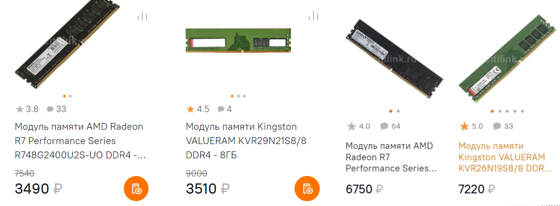 Оперативная память. Разница с февралем в среднем +300-500р. Но в марте было 7220 стало 3510р.