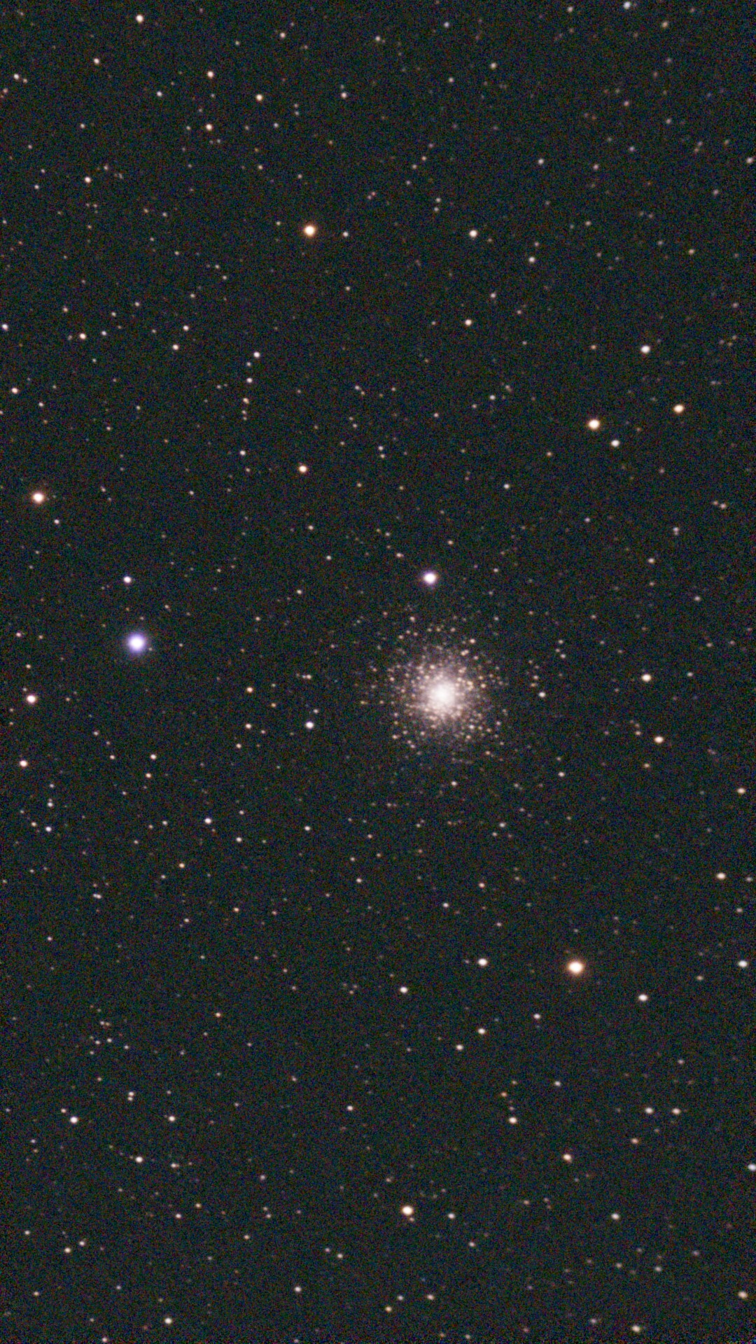 Снято на Seestar 50s. В маленькие телескопы и подзорки такого же разделения на звёзды не видно -- шаровик выглядит, как серое пятно. Но выдержка на фото многое решает!