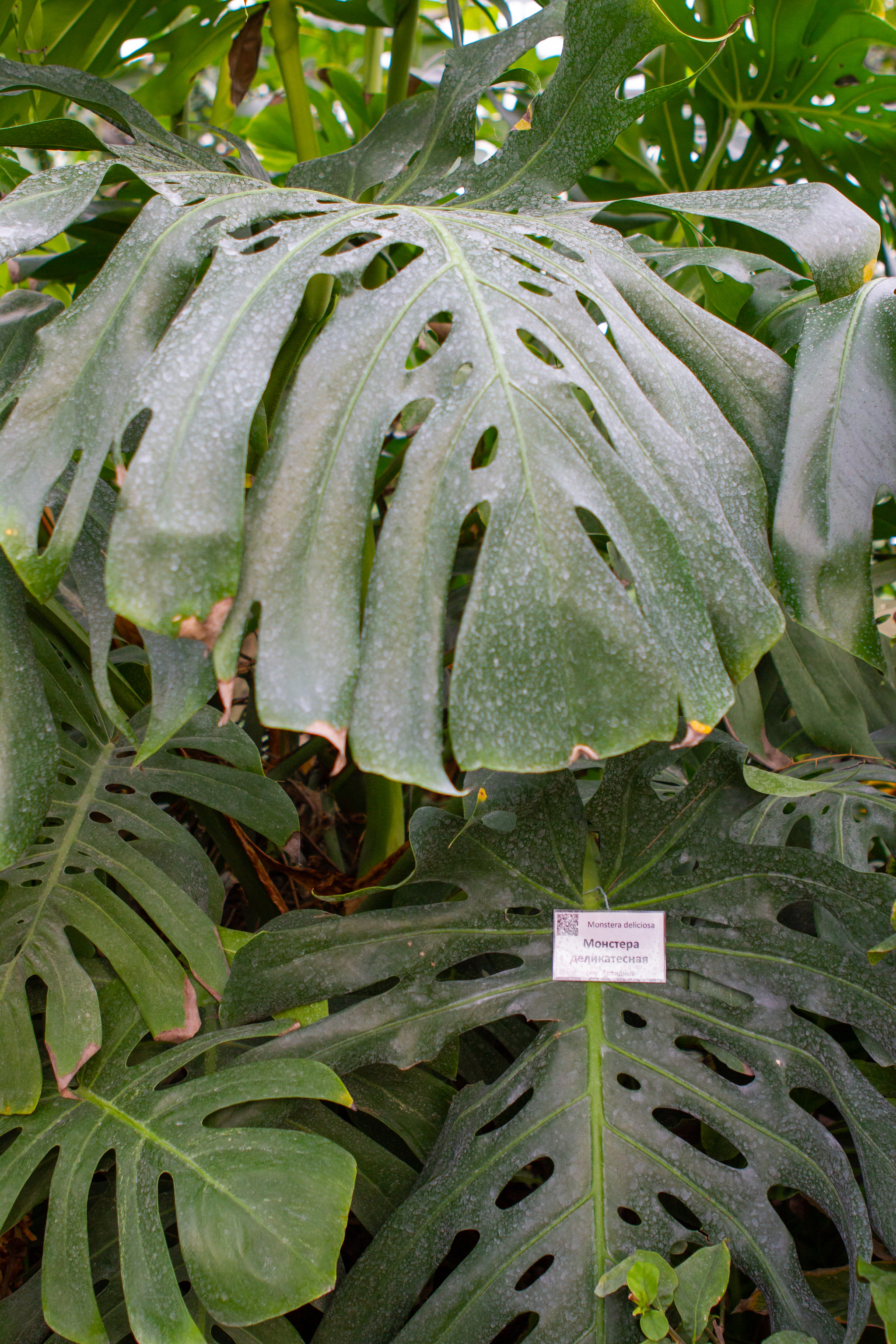 Есть забавное растение с огромными листьями - Монстера Деликатесная.