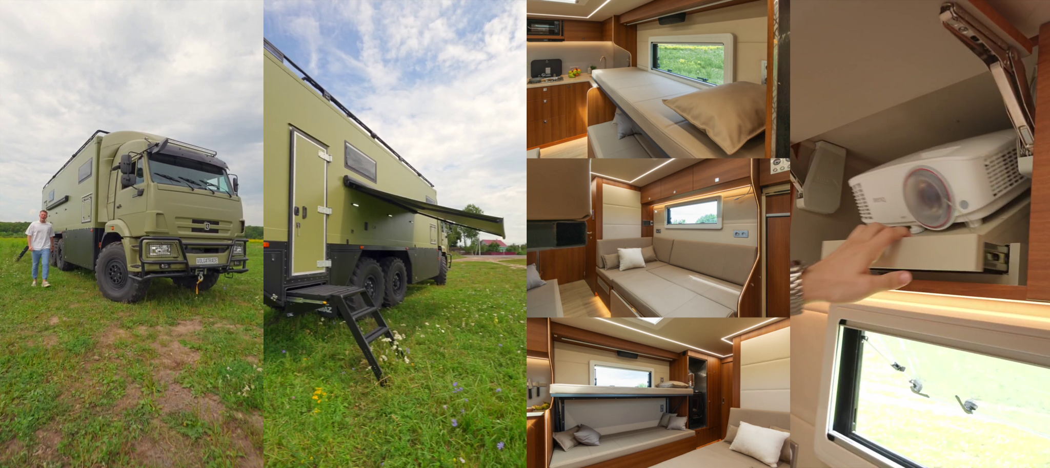 В России представлен 6-колесный полноприводный дом на колесах на базе КамАЗа. Мотор V8, 300 л.с., посудомойка, стиральная машина, проектор, гардером и огромная кровать https://share.google/9EQwdT8UkgY1ivQg2