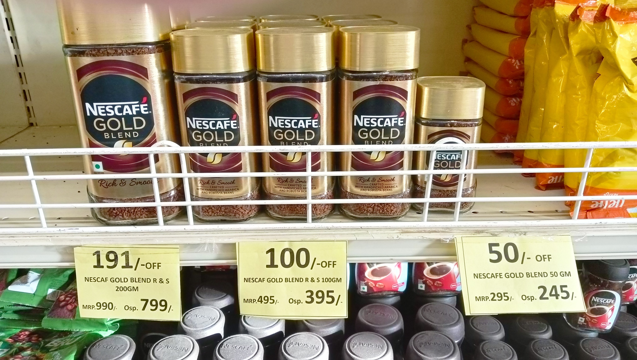 Курс рупии примерно равен рублю. Полки со знаменитым индийским чаем занимают гораздо больше места, чем кофе. Увидел знакомый бренд Lipton.