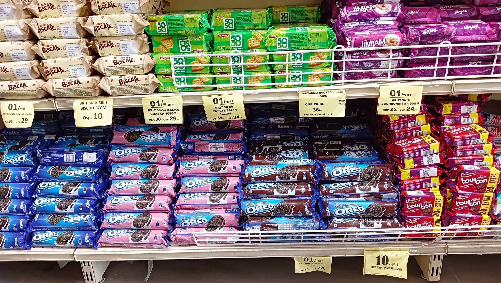 В магазине много разных пачек с печеньем, увидел знакомые Oreo и Kabberry.