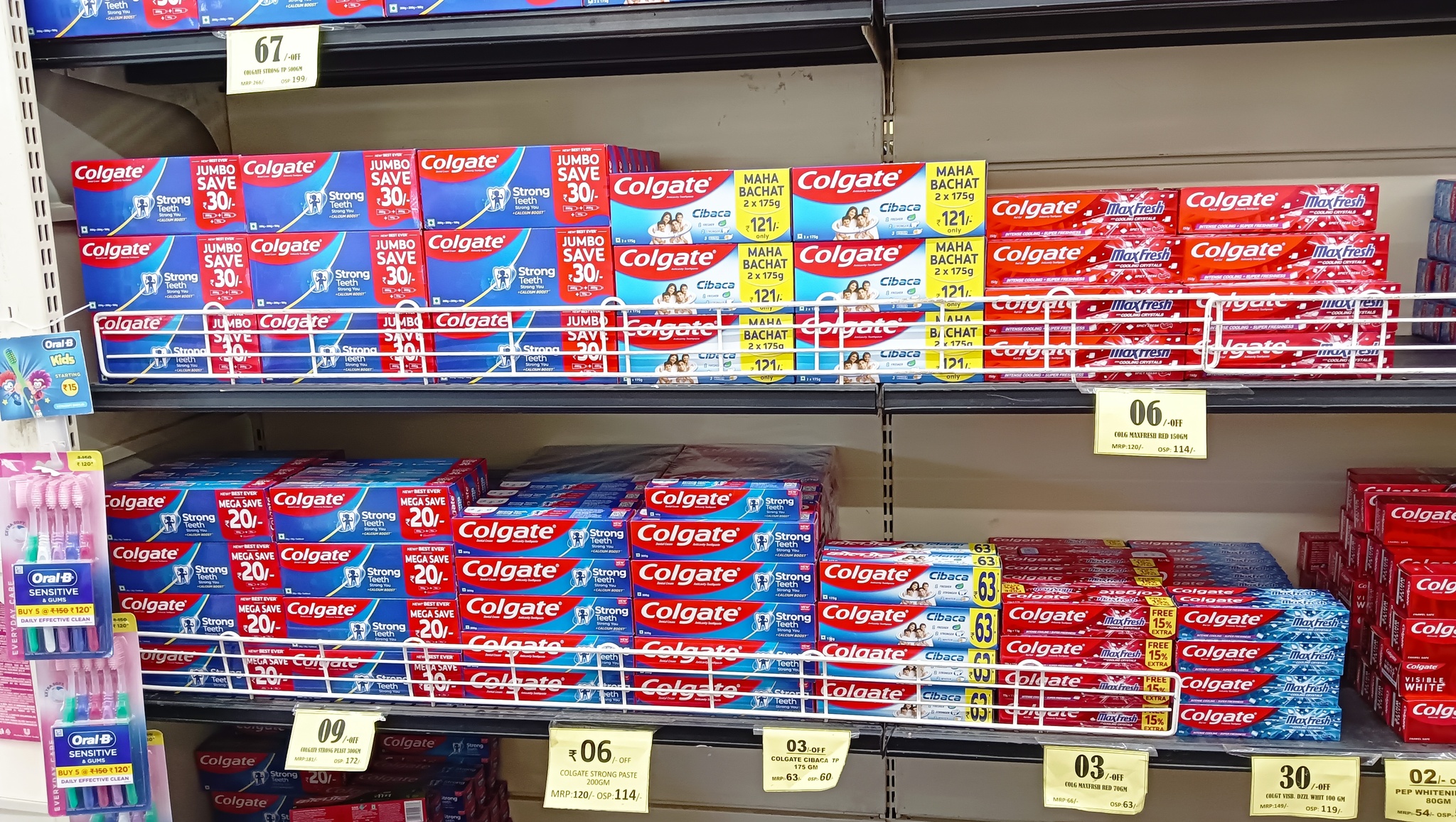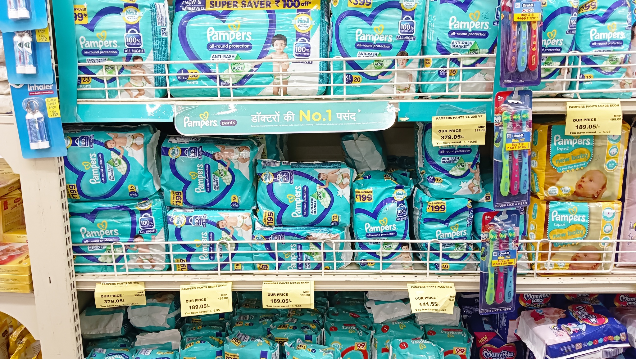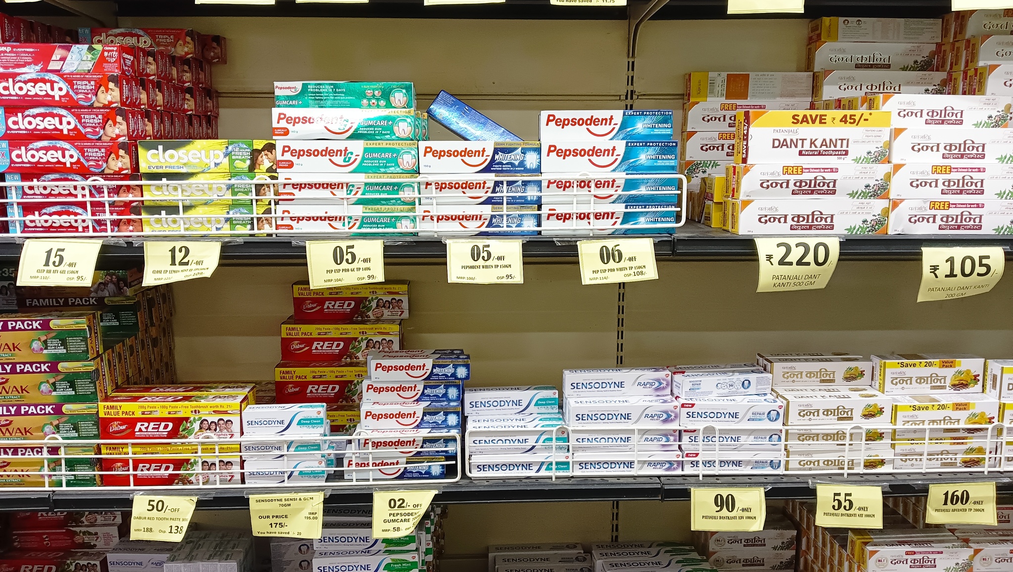 Бытовая химия занимает добрую половину полок магазина. Индийские торговые марки присутствуют, но большую площадь заняли мировые фирмы.