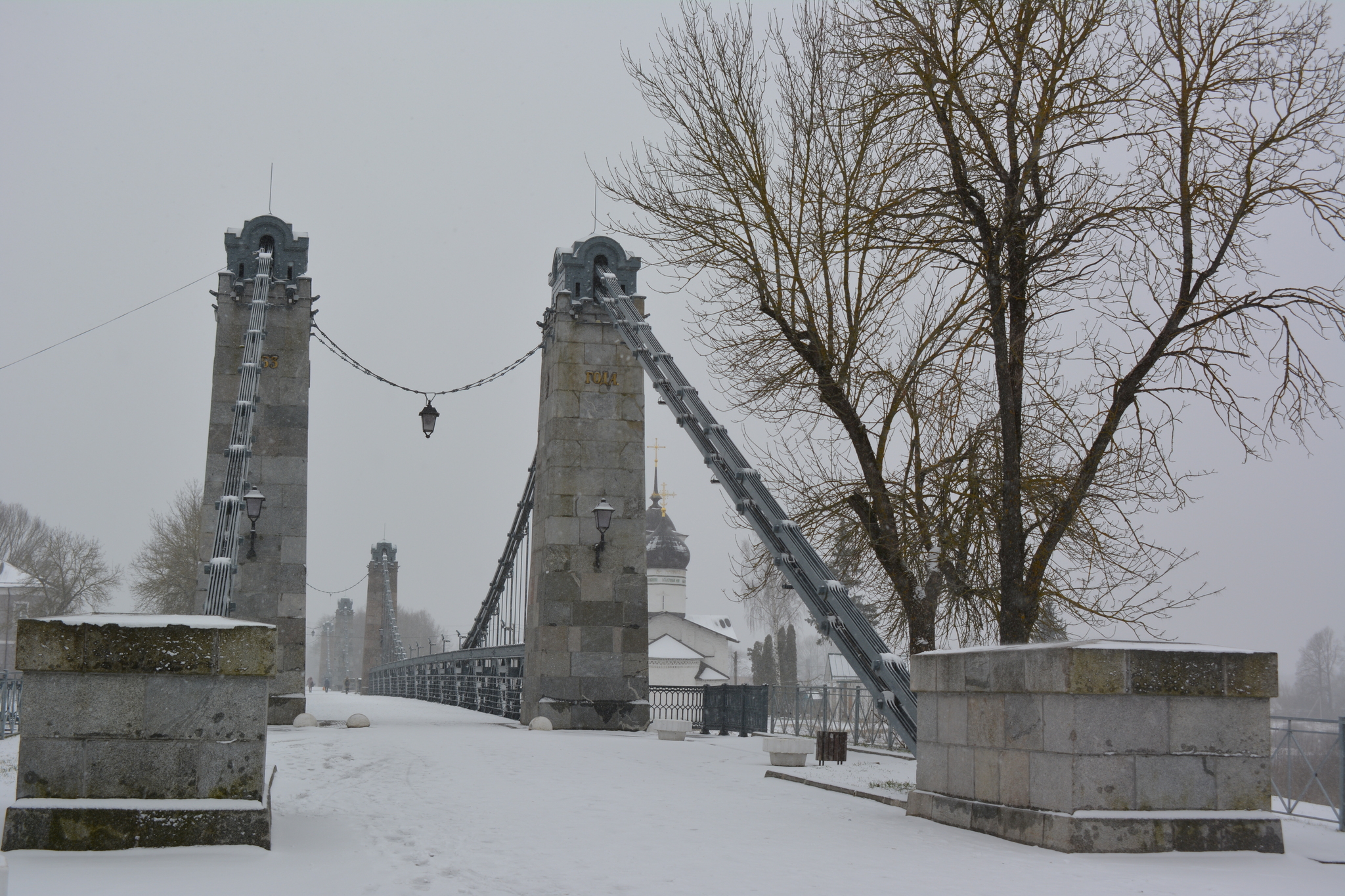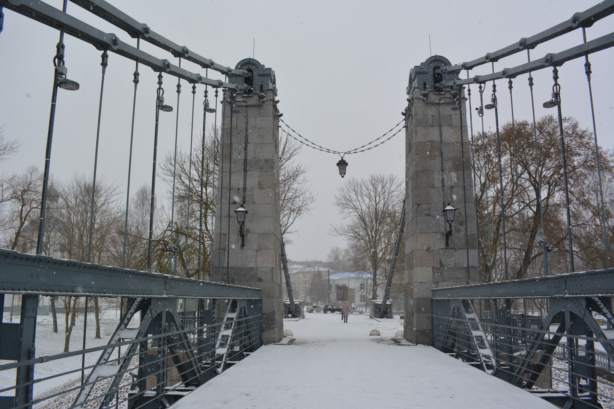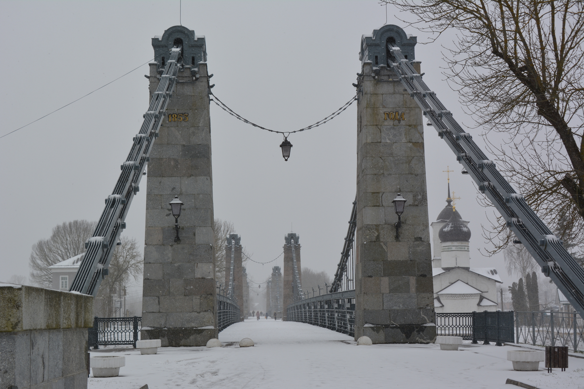 Эти два висячих моста через реку Великая - единственные сохранившиеся в России цепные транспортные мосты середины XIX века.
